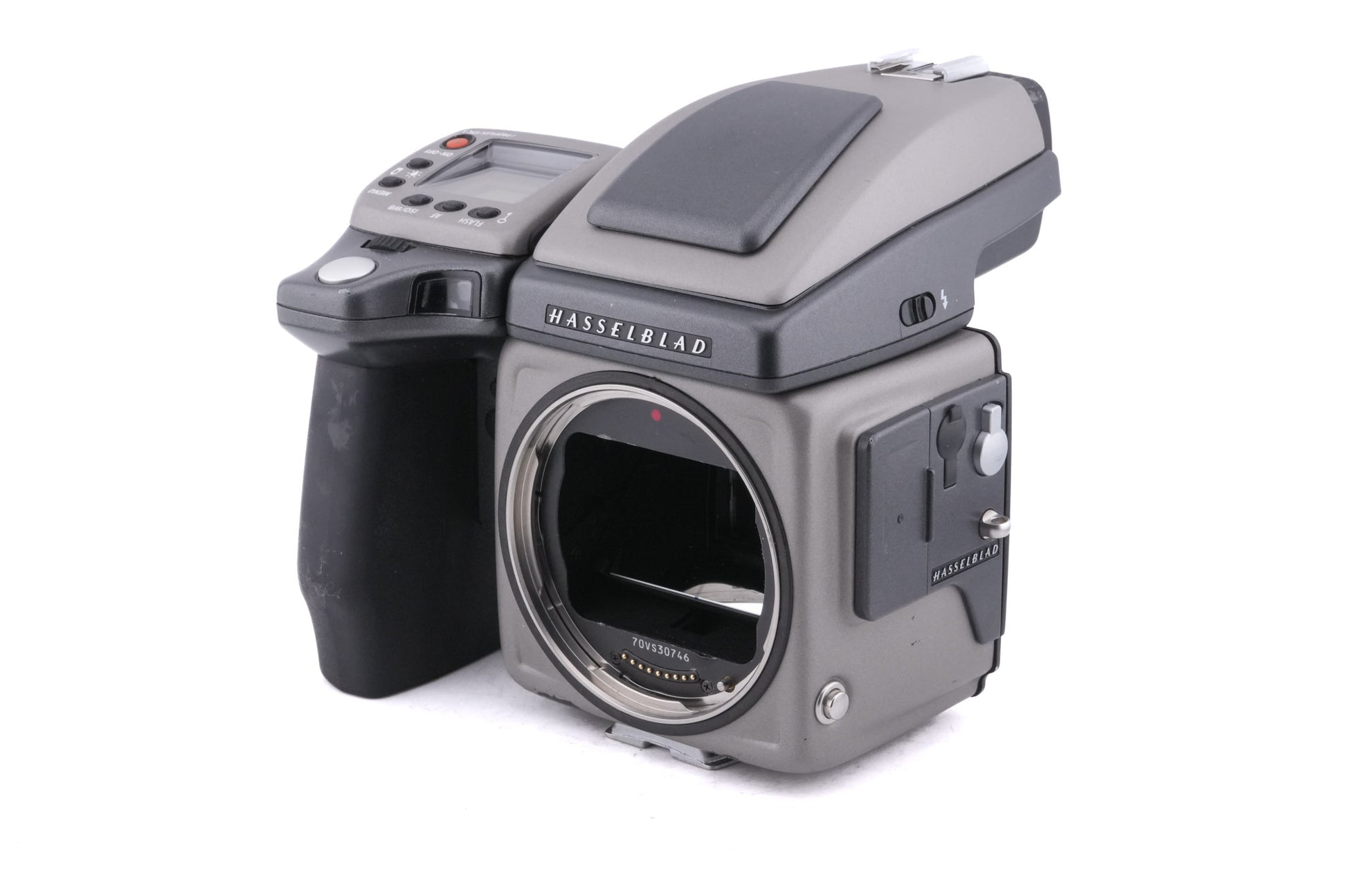 Autofocus H mount digital SLR released by Hasselblad in 2010. This is the H4D body only with no digital back. It is not compatible with film backs. Metal and plastic body in dark grey finish.