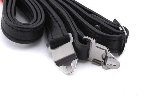 Leather strap made by Hasselblad for Hasselblad V system cameras. Black leather and metal lugs.