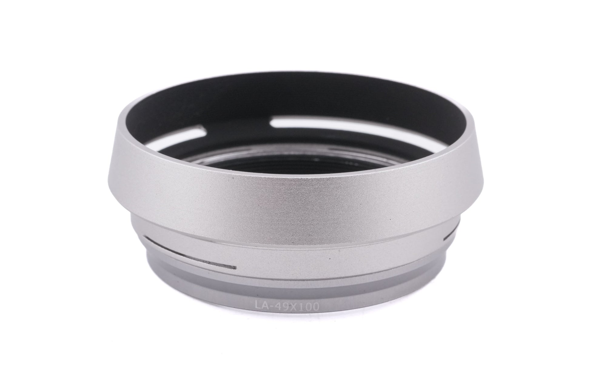 Vented lens hood made by JJC for lenses on the Fujifilm X70, X100, X100V, X100VI, X100S, X100F, and X100T cameras. Plastic body available in silver.