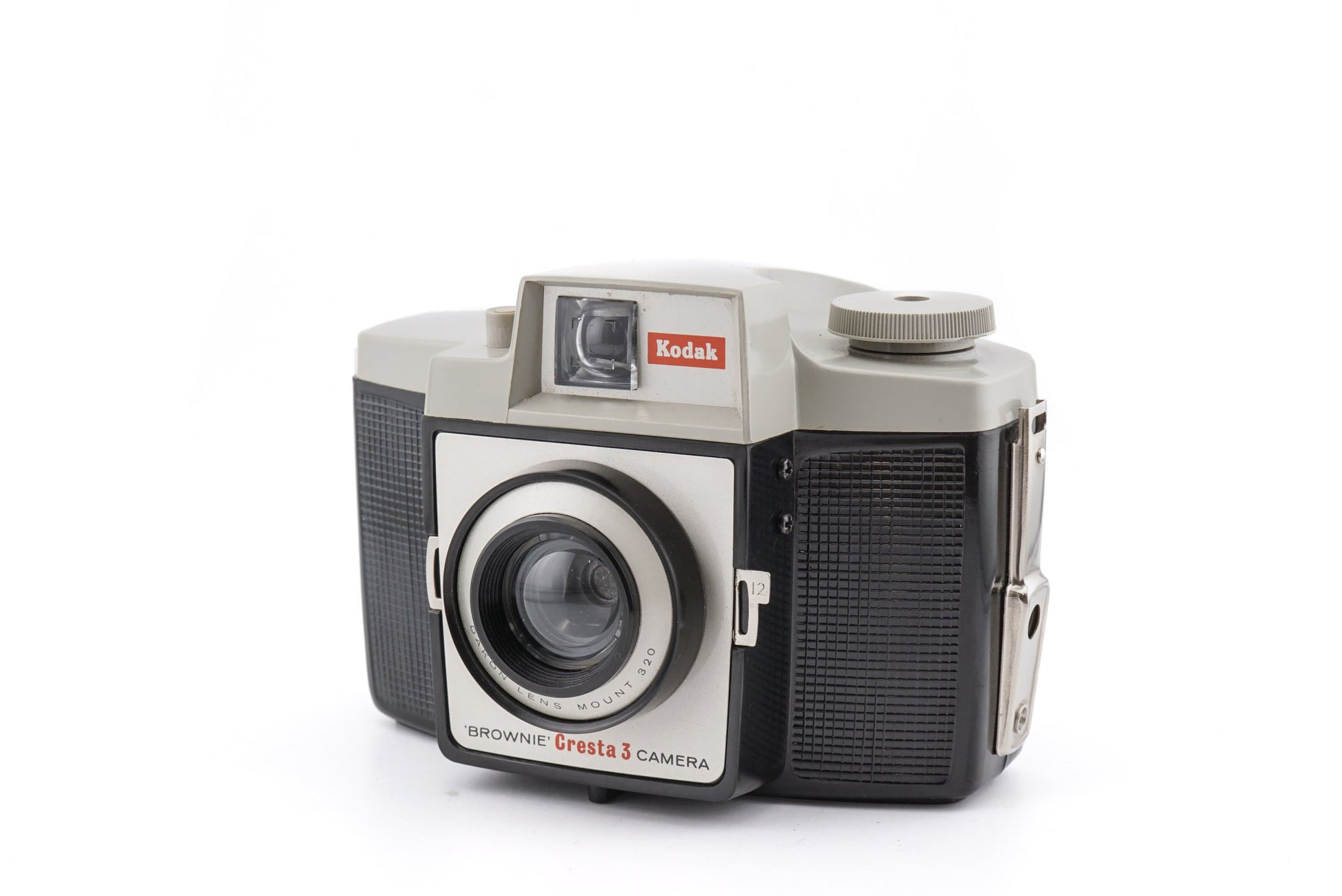 Manual focus 6x6 120 roll film camera introduced by Kodak in 1960 and discontinued in 1965. It has one shutter speed and one aperture setting. Bakelite body available in black/grey.
