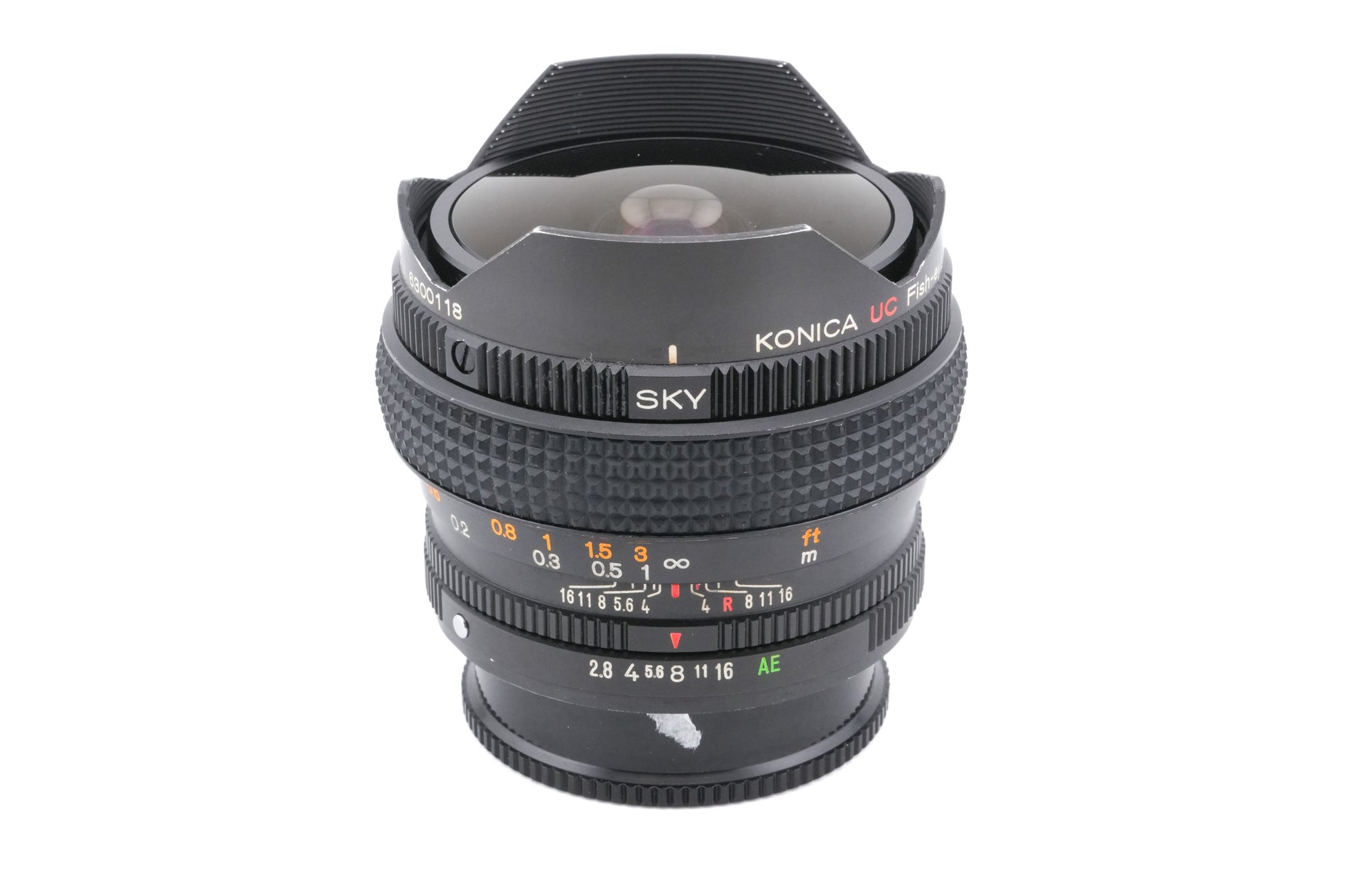 Autofocus fisheye lens made for Konica AR mount SLRs. It features three built-in filters. Metal body available in black.