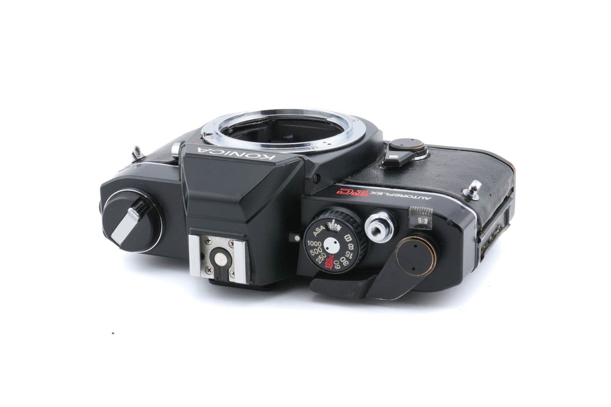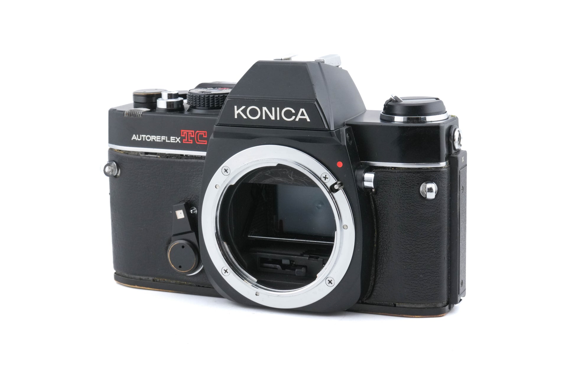 Manual focus AR-mount 35mm SLR released by Konica in 1976. The Autoreflex TC is a simplified version of the Autoreflex T4 with no depth-of-field preview or multi-exposure functions. It is also known as the Acom-1 (JP). It takes an outdated mercury battery, but an internal bridge circuit makes modern 1.5v PX625s work fine. Plastic body available in black.