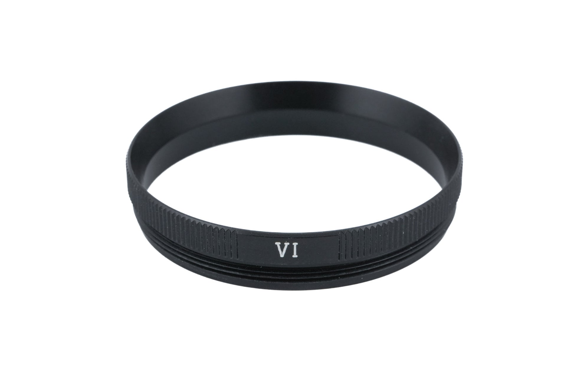 Filter retaining ring made by Leica for Series 6 (VI) filters. Series filters are glass disks mounted in a threadless metal rim. They are attached to the lens with an adapter and (or) a retaining ring. Metal body available in black.
