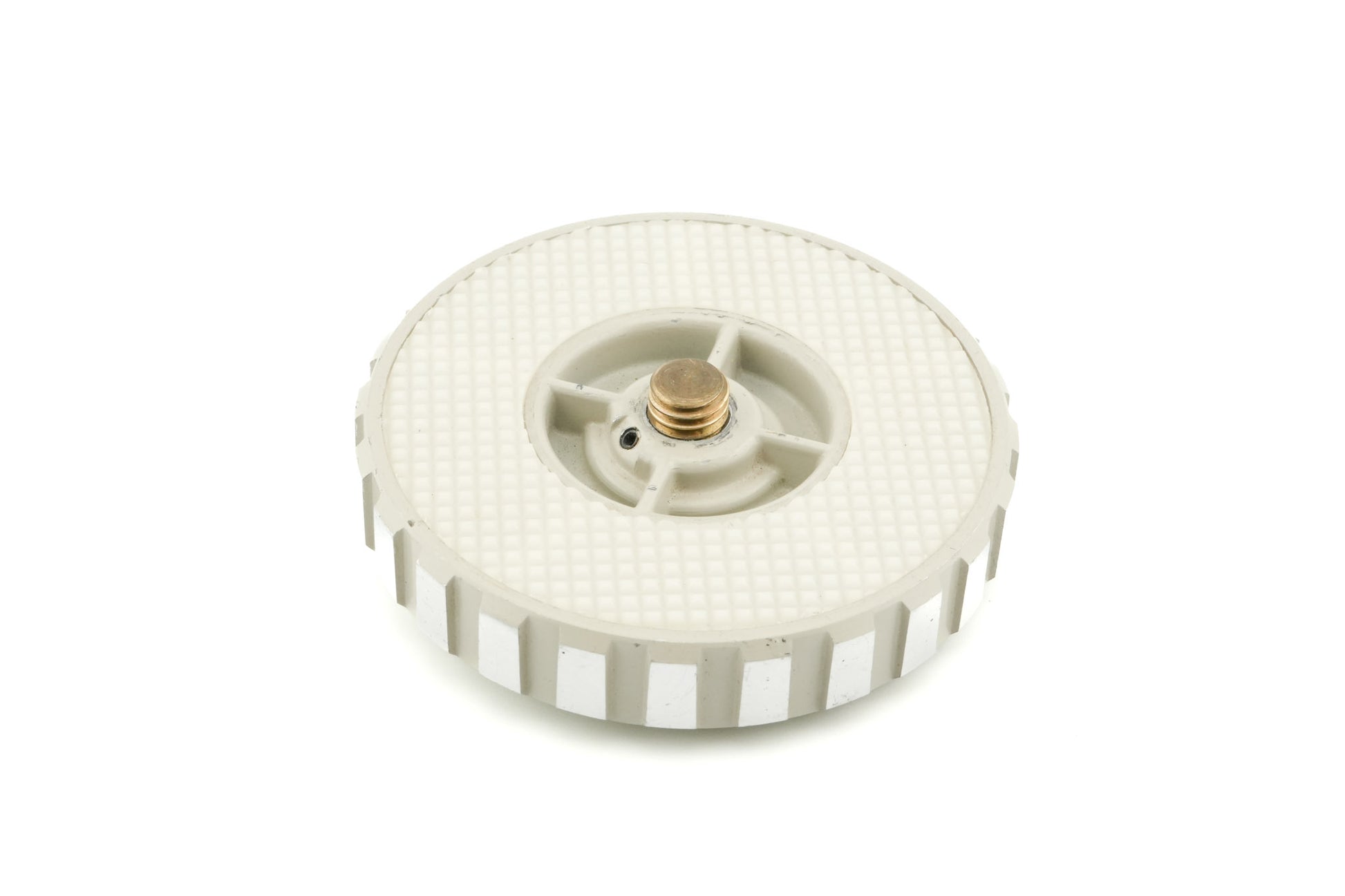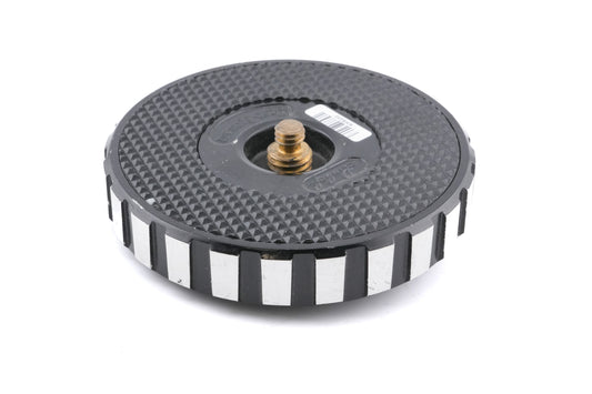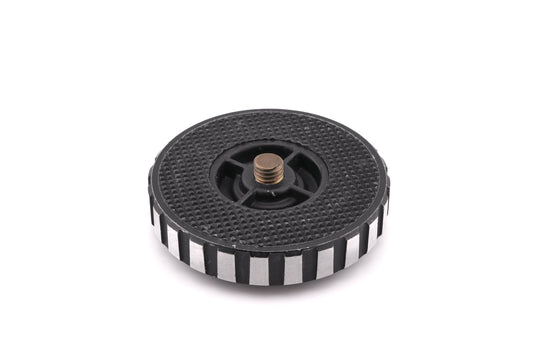 Tripod top plate made by Linhof. It has a 3/8" screw on the bottom and a 1/4" on the top. Metal and plastic body available in black.