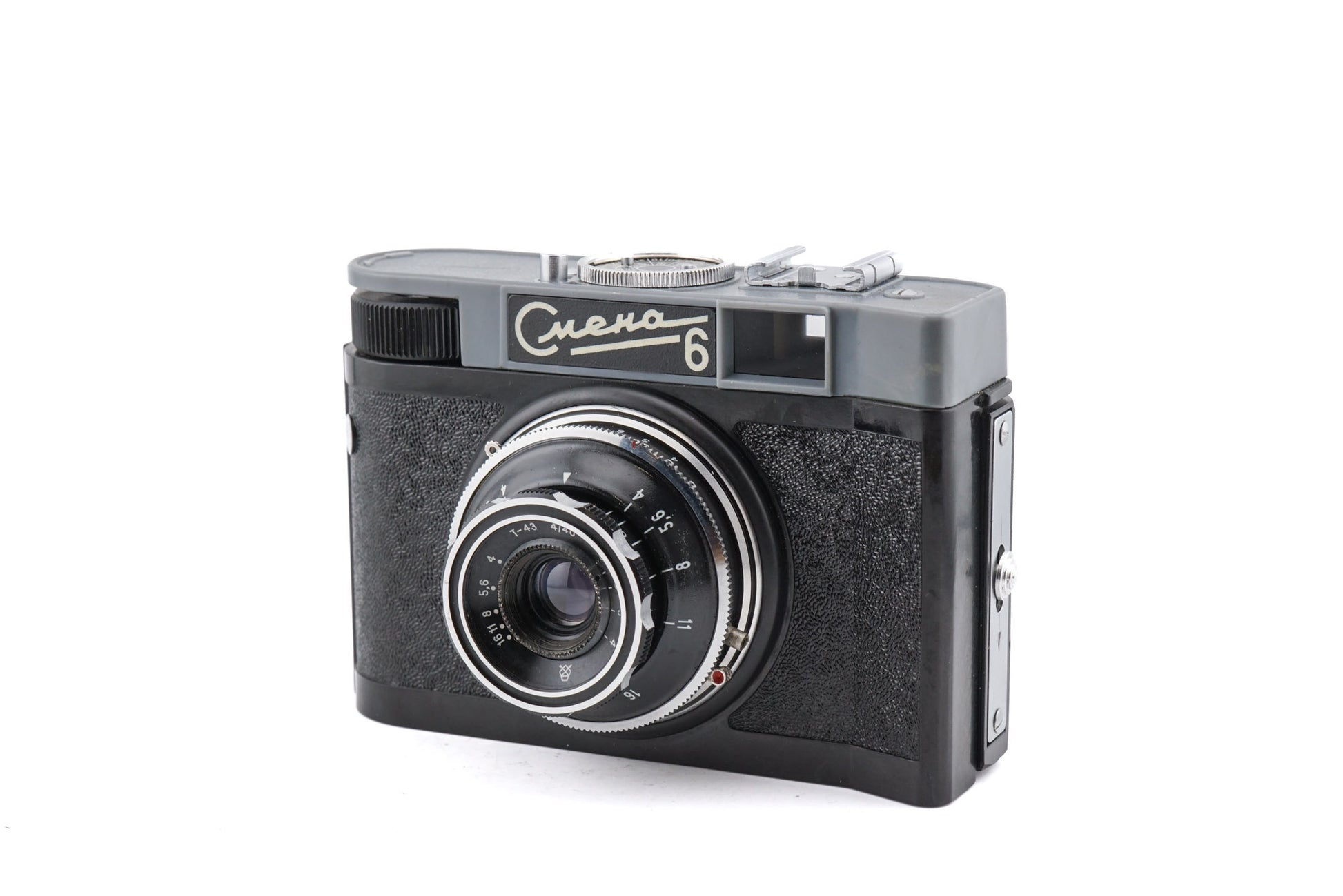 Manual focus fixed lens viewfinder camera produced in the Soviet Union from 1961 to 1969. Very plasticky, but Lomo! Available in black/grey.