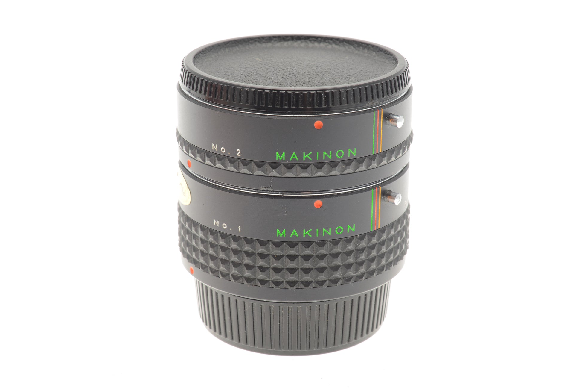 Set of two extension tubes for Contax/Yashica -mount cameras and lenses. Tube no. 1 gives 29mm of extension and tube no. 2 20mm.