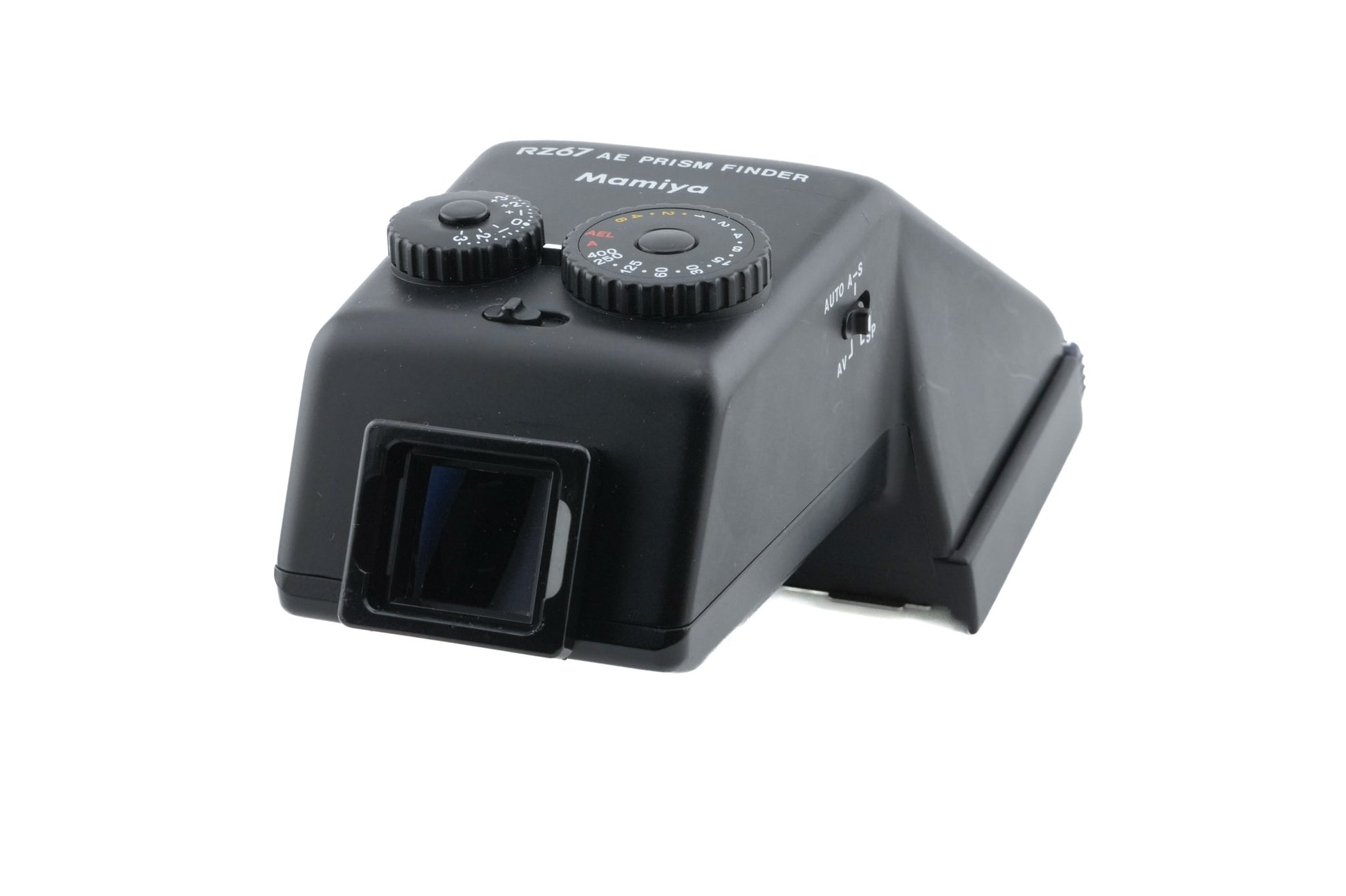 Prism viewfinder made for RZ67 mount 120 SLRs by Mamiya. It provides an unreversed, laterally-correct image and offers aperture-priority auto-exposure as well as metered manual exposure. Shutter speed and metering modes are available in the viewfinder. Metal and plastic body available in black.