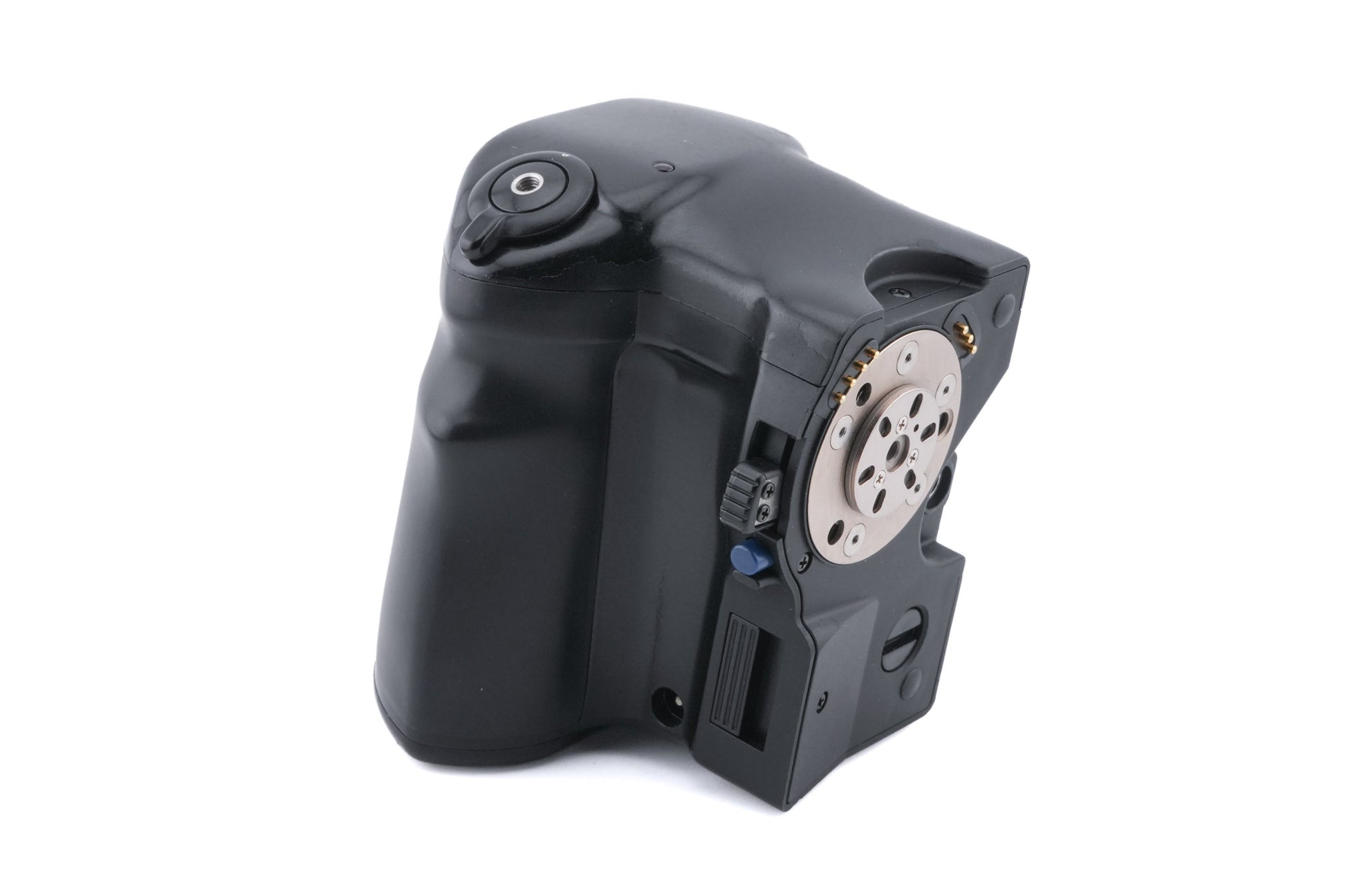 Combined winder and grip for holding the camera with the right hand. Enables uninterrupted shooting with a frame rate of ~2fps. It can be attached to an AC adapter. Plastic body available in black.