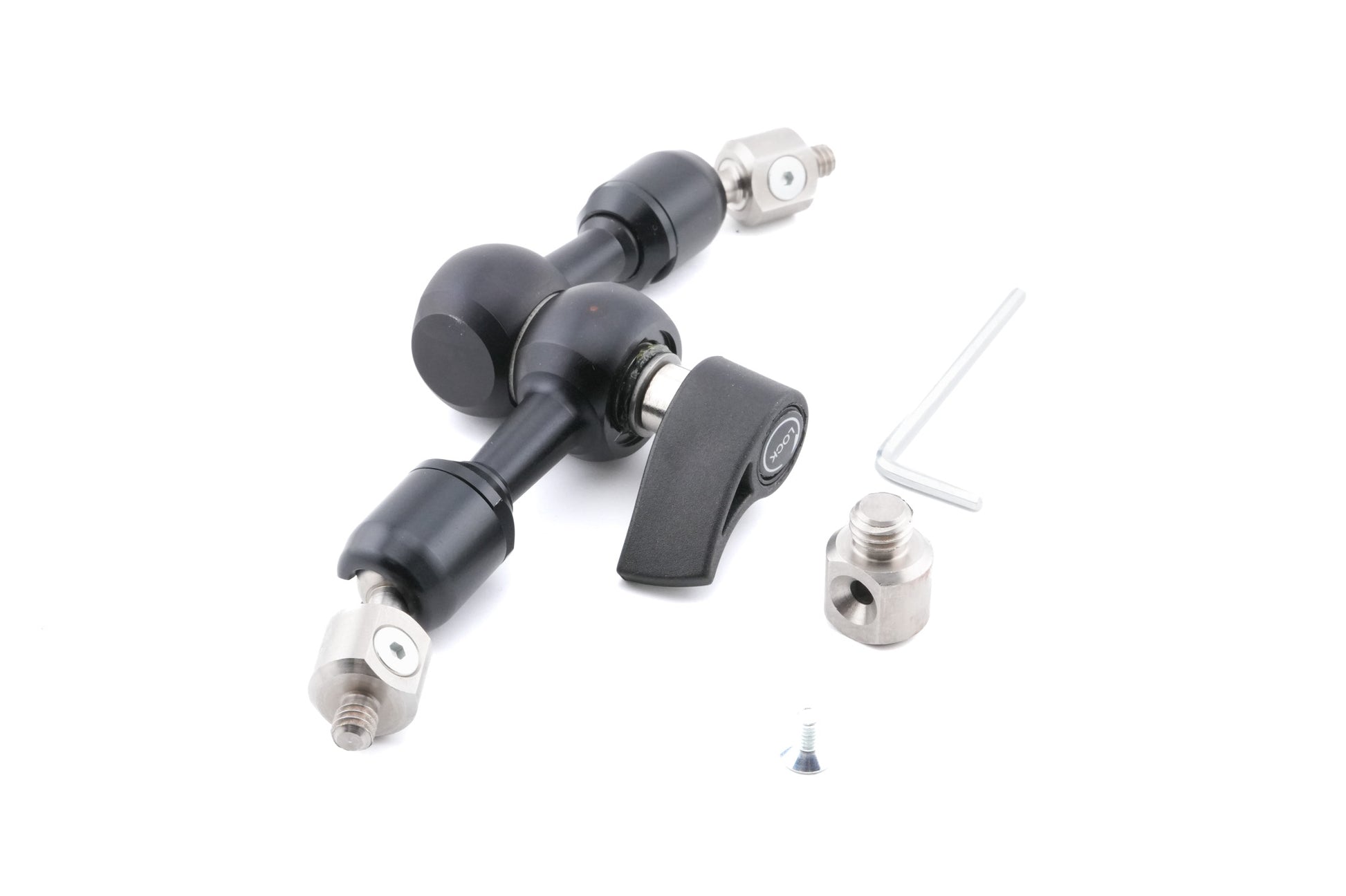 Friction arm made by Manfrotto. It features 1/4" threads on both ends. Metal body available in black.