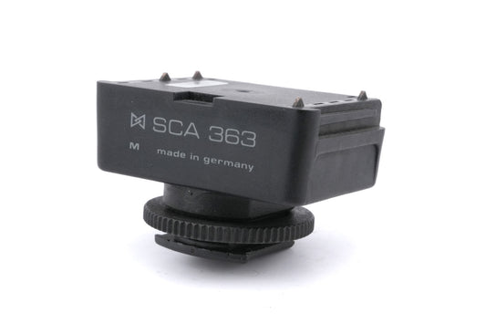 Flash adapter for using Metz SCA 300 series flashes with Ricoh film bodies with Pentax K mount. Compatible with following Ricoh cameras: KR-5 Super, KR-10, KR-10 Super, XR-1 S, XR-2 S, XR-S, XR-6, XR-7 and XR-F. Plastic body available in black.