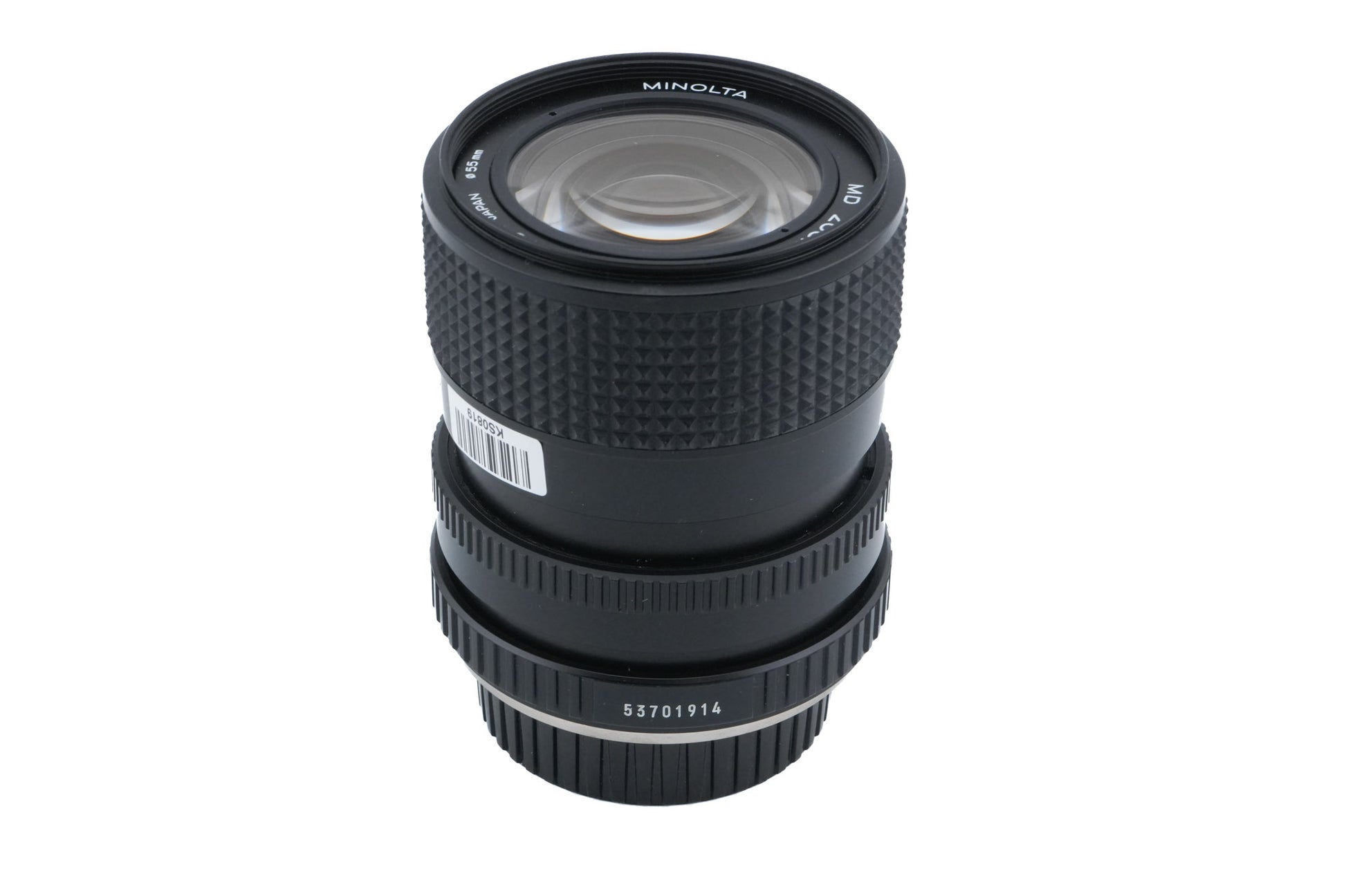 Manual focus wide to telephoto zoom lens made for Minolta MD-mount SLR cameras by Minolta introduced in 1985. Metal body available in black.