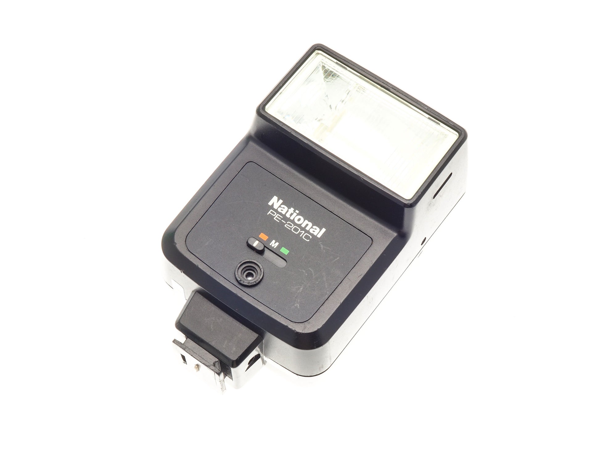 Flash made by National for all manual flash cameras. It has a single contact pin. Plastic body available in black.