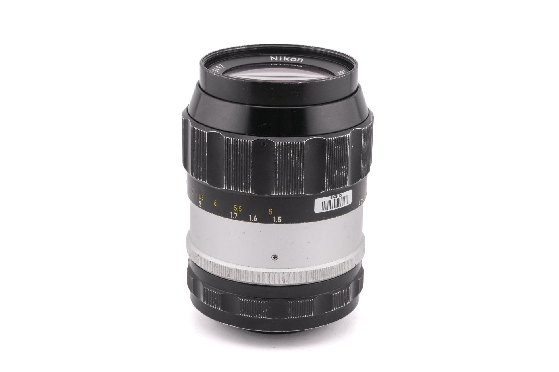 Manual focus telephoto lens made for F-mount SLRs by Nikon starting in 1961. It only has the pre-AI bunny ears, so it will only meter properly on older F and Nikkormat bodies. The compatible Nikon lens hood is HS-4. Metal body available in black/silver.