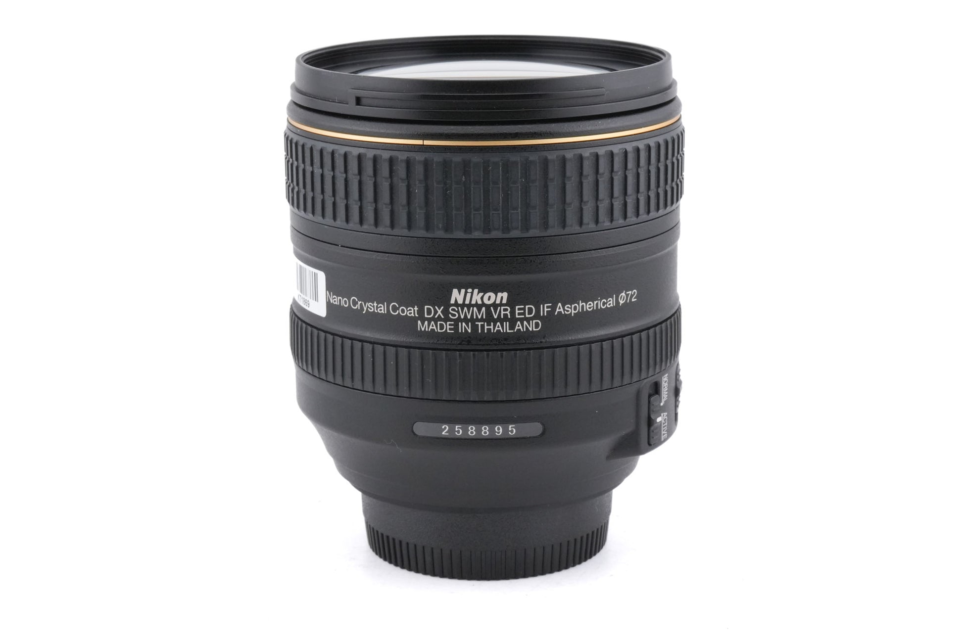 Autofocus standard zoom made for DX-mount digital SLR cameras by Nikon in 2015. It is designed for APS-C-sized sensors and gives the equivalent field of view to a 24-120mm lens on full frame/35mm. It has a Nano Crystal Coating, a Silent Wave Autofocus Motor (SWM), ~4 stops of image stabilization (VR), and Internal Focusing (IF). Plastic and metal body available in black.