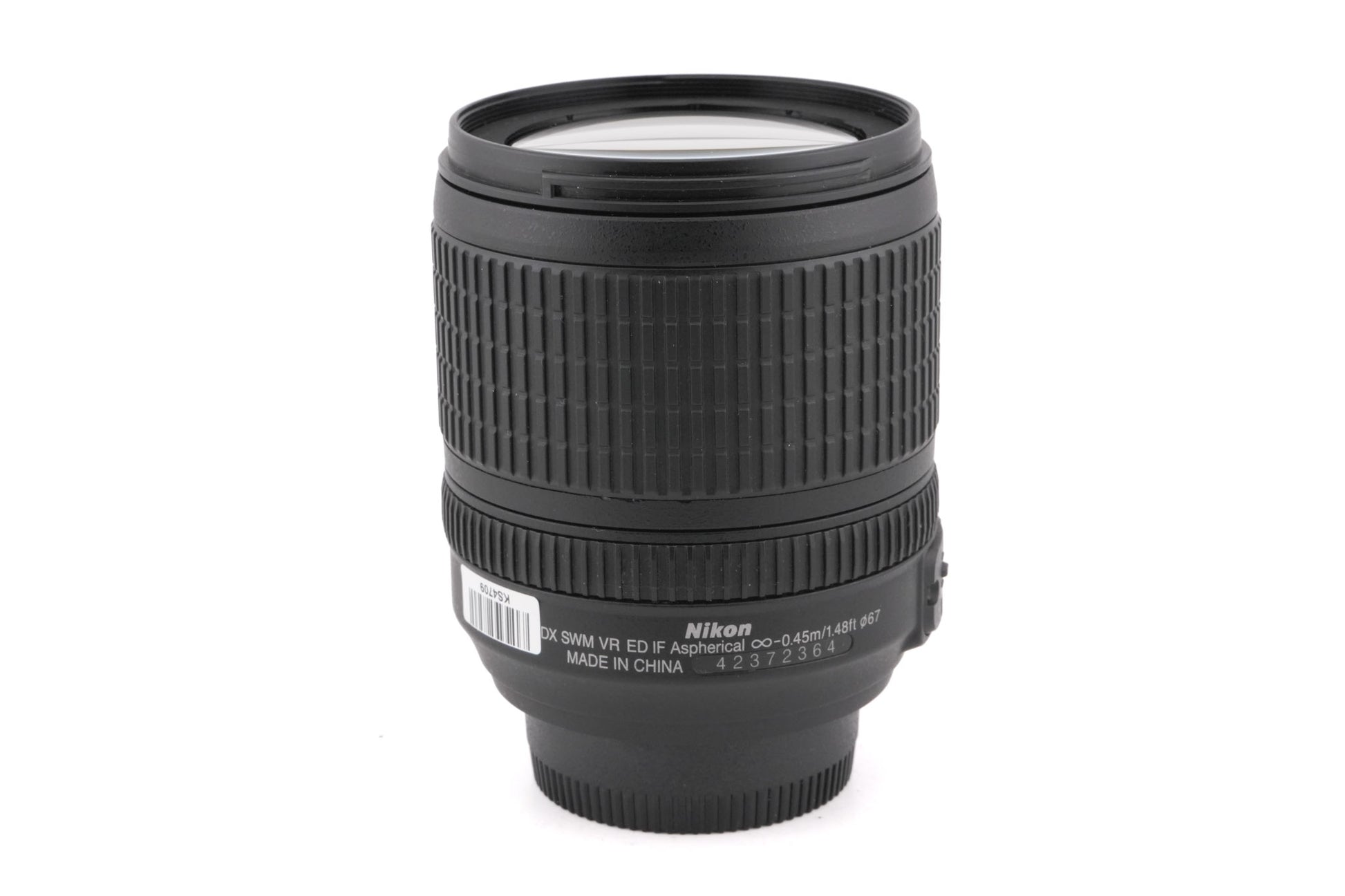 Autofocus telephoto zoom lens made for DX-mount digital SLR cameras by Nikon. It is designed for APS-C-sized sensors and gives the equivalent field of view to a 27-158 mm lens on full frame/35mm. It has image stabilization (VR). Plastic body available in black.