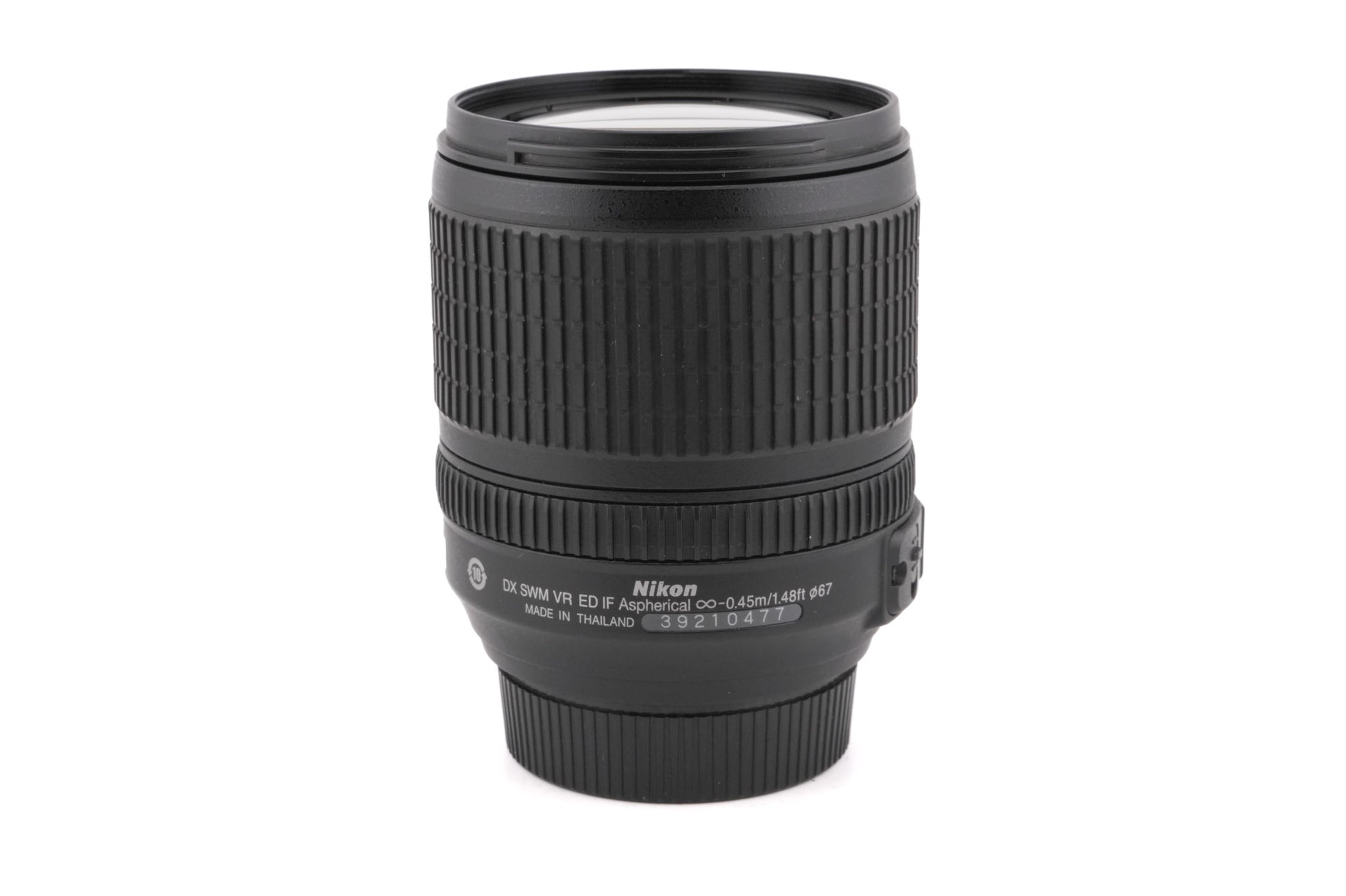 Autofocus telephoto zoom lens made for DX-mount digital SLR cameras by Nikon. It is designed for APS-C-sized sensors and gives the equivalent field of view to a 27-158 mm lens on full frame/35mm. It has image stabilization (VR). Plastic body available in black.
