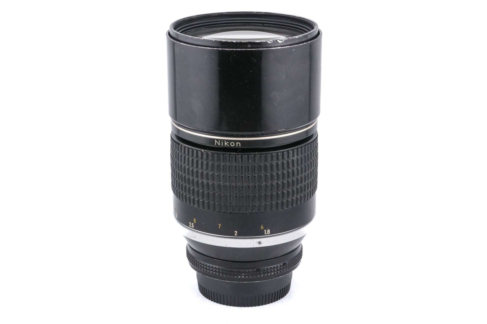 Manual focus telephoto lens made for F-mount 35mm SLR cameras by Nikon starting in 1981. It uses an extra-low dispersion glass element (ED) to reduce chromatic aberrations. It has the bunny ear metering prongs, AI ridge, and AI-S indent so it will meter properly on all manual Nikon cameras and can be used with the advanced program modes of later cameras. It has a built-in lens hood. Metal body available in black.