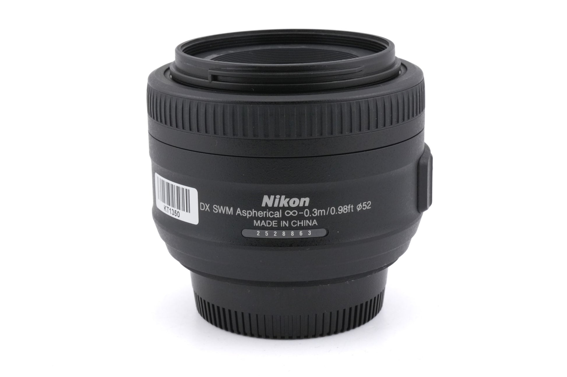 Autofocus normal lens made for DX-mount digital SLR cameras by Nikon. It gives the equivalent field of view to a 52.5mm lens on full frame/35mm. Plastic and metal body available in black.