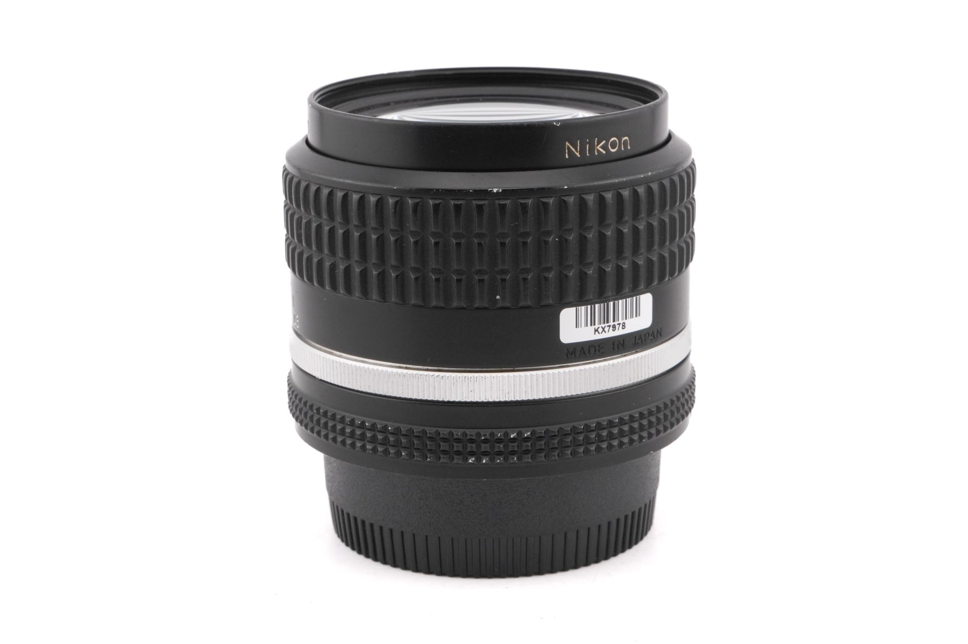 Manual focus wide normal lens made for F-mount 35mm SLR cameras by Nikon. It has bunny ear metering prongs, AI ridge, and AI-S indent, so it will work properly on all Nikon cameras including those with programmed auto-exposure modes. Metal body available in black.
