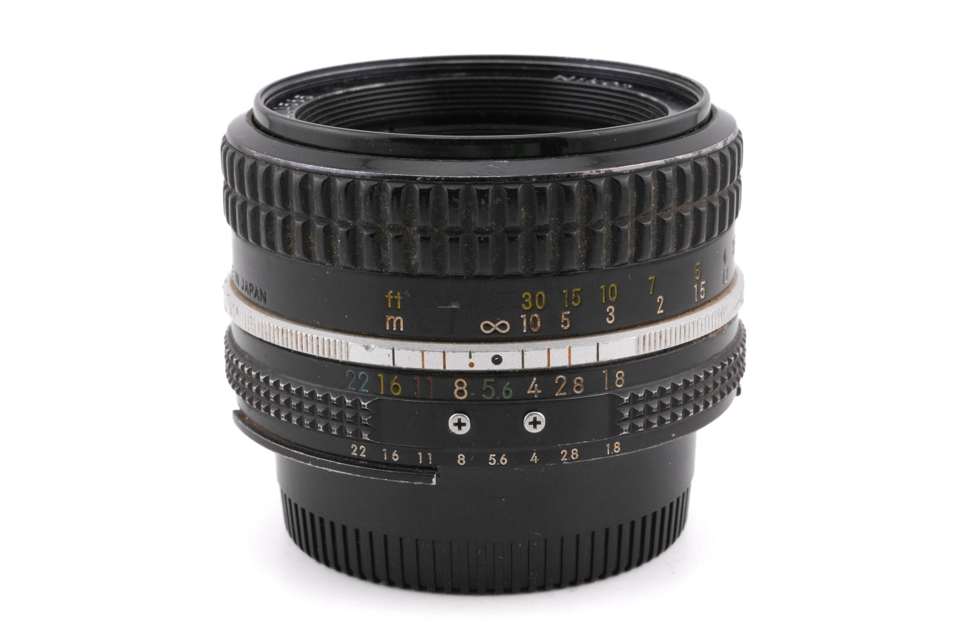 Manual focus normal lens made for F-mount SLRs by Nikon. Earlier models have both AI ridge and bunny ear metering prongs, later models have only the AI ridge. Plastic/metal body available in black.