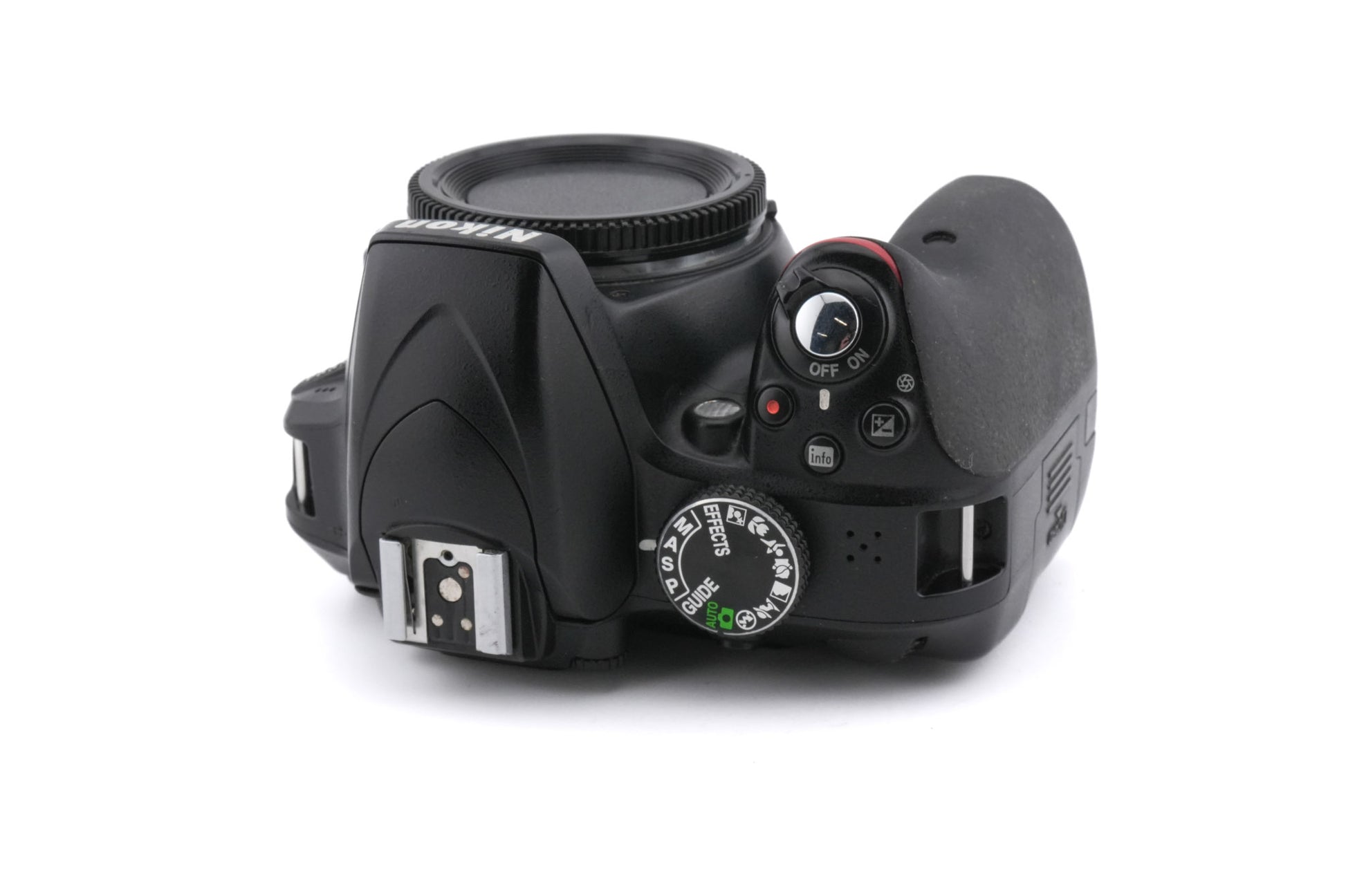Autofocus APS-C DX-mount DSLR camera released by Nikon in 2014. It has full HD 1,920x1,080 / 60 fps movie capabilities, a three-inch LCD monitor, and a self-timer: 2, 5, 10, 20 sec with 1 to 9 exposures. This model does not have an in-body autofocus motor so the AF requires a lens with an integrated autofocus motor. Plastic and metal body available in black.