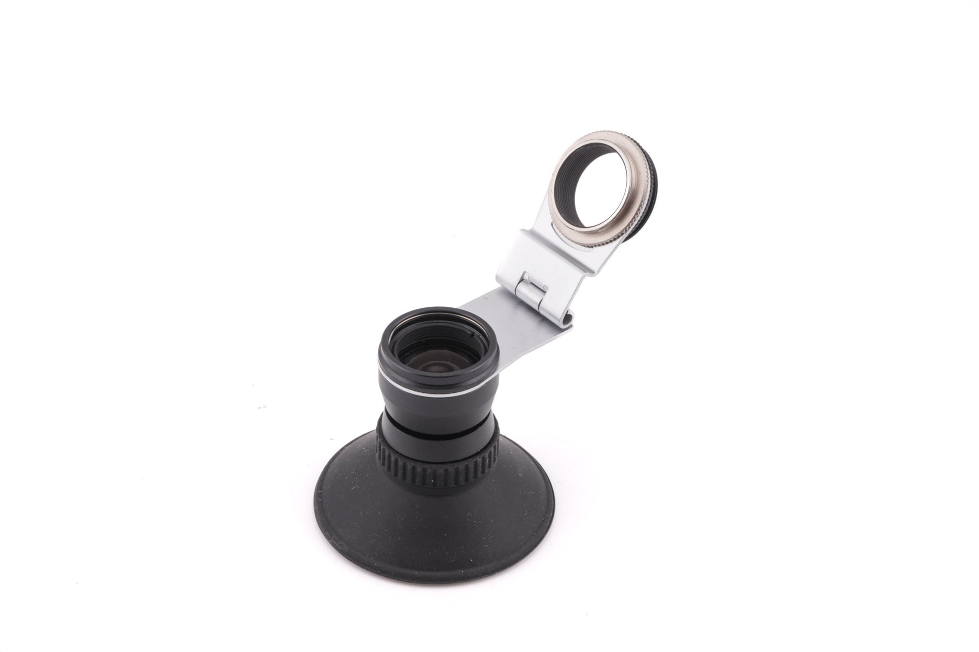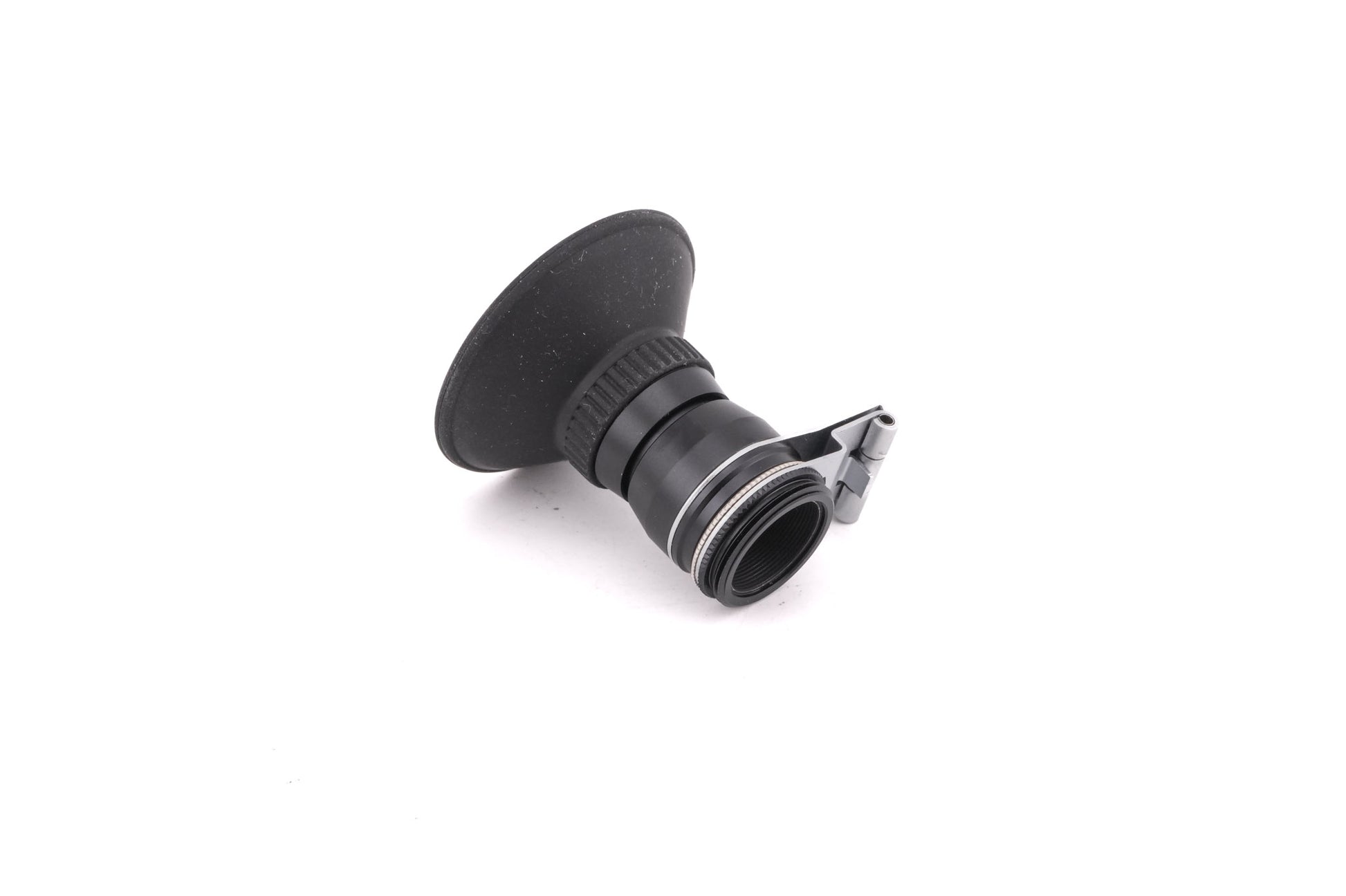 Magnifying eyepiece made by Nikon. It has the 19mm threads found on many manual Nikon cameras, including the FM and FE series. Metal/rubber body available in silver/black.