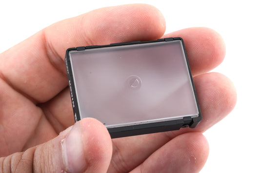 Focusing screen made for F4 35mm SLRs by Nikon. It's intended for manual focus and has a 45º split prism in the middle. Metal body available in black.