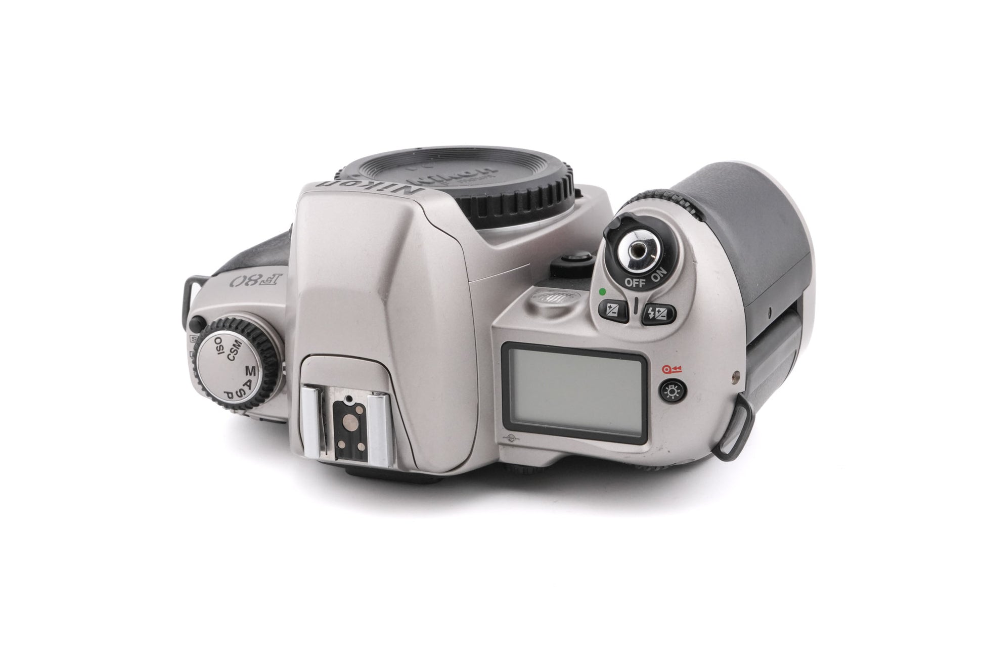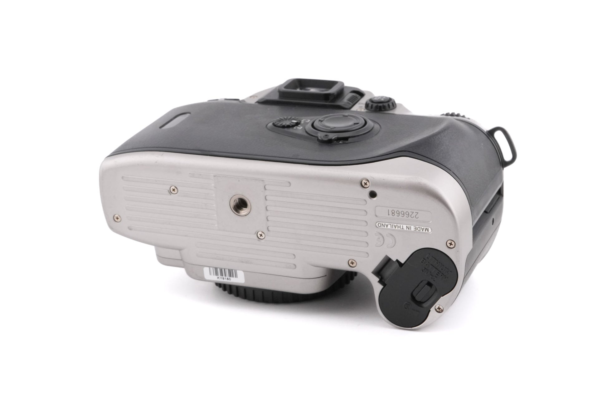 Autofocus F-mount 35mm SLR camera introduced by Nikon in 2000. It features automatic exposure with four different exposure modes and matrix metering. Plastic body available in black & champagne.