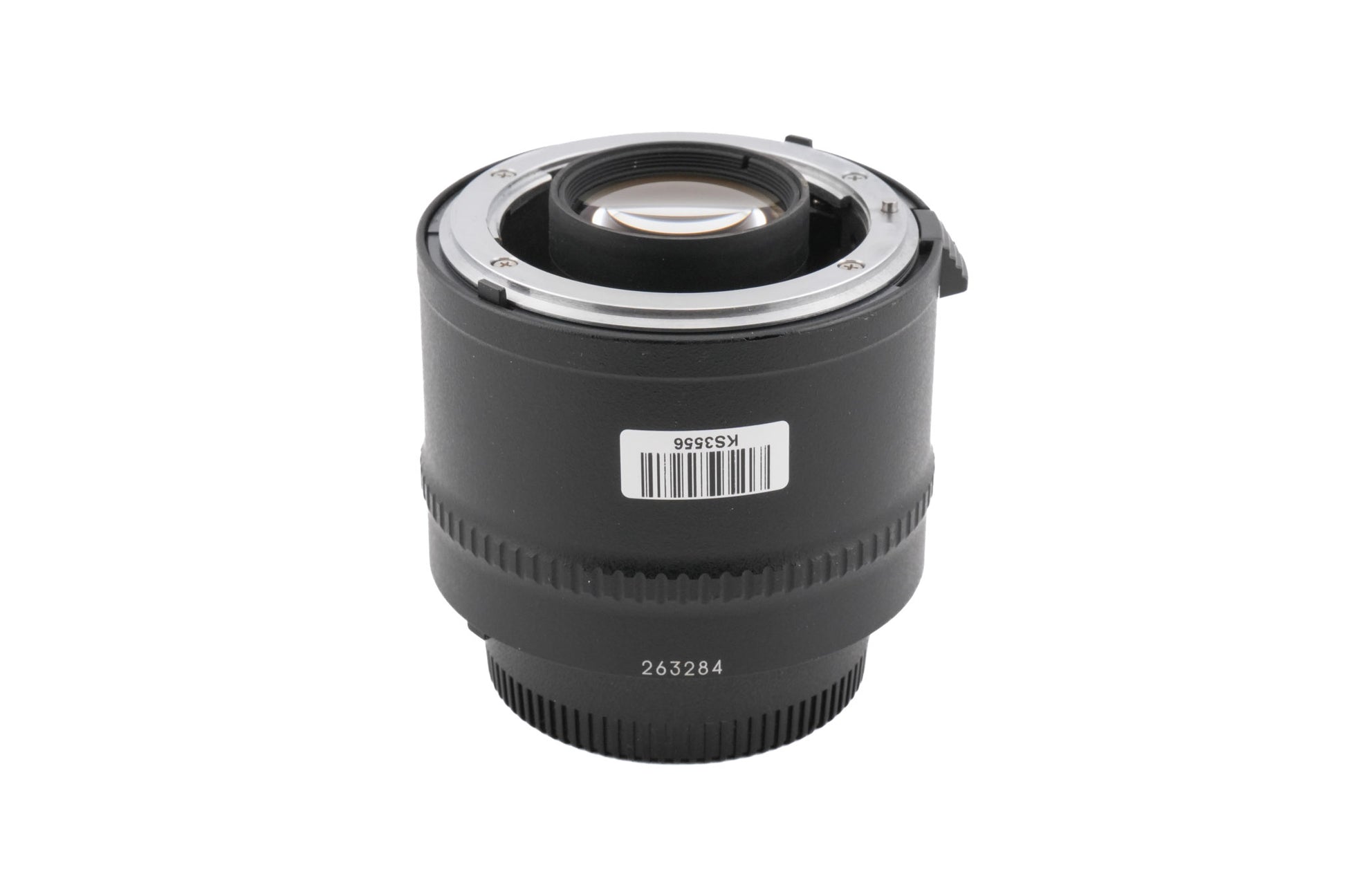 Autofocus teleconverter made for F-mount SLR cameras by Nikon. It doubles the focal length of your lens at the cost of some (2 EV) light transmission. This teleconverter does not have a pass-through for screw-drive autofocus and the front element protrudes into the lens a bit, so be sure to check compatibility before use. Metal and plastic body available in black.