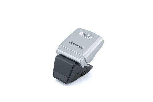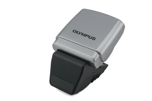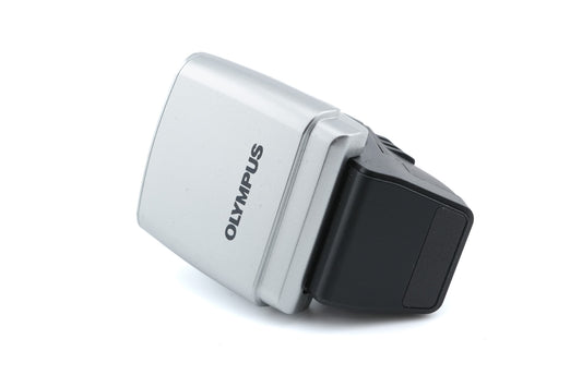 Small-sized flash unit made by Olympus. Plastic body available in silver.