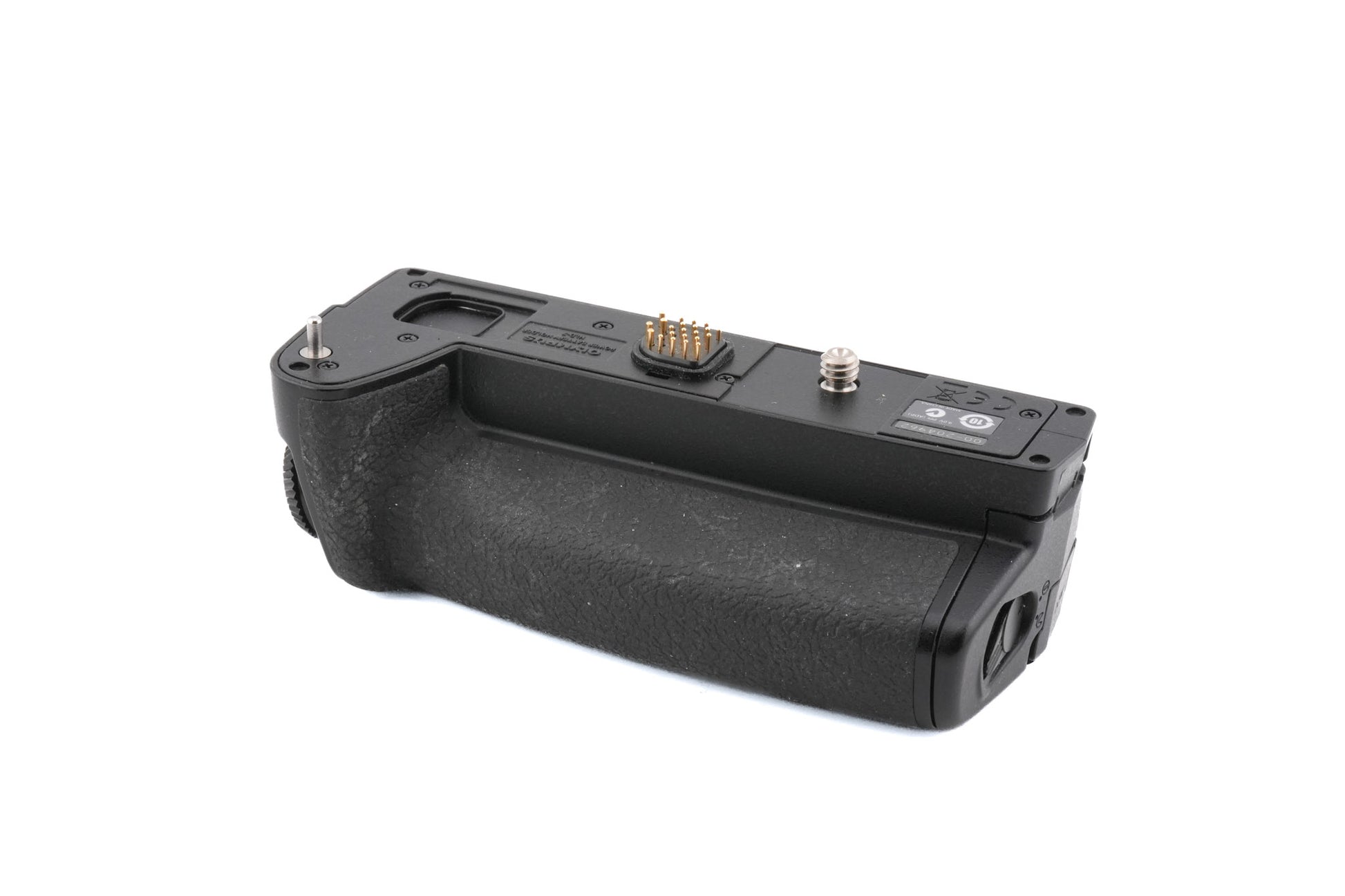 Vertical battery grip made by Olympus for Olympus OM-D E-M1 camera. It adds an extra shutter button, two control dials, and two customizable function buttons. Dust- and splashproof. Plastic body available in black.