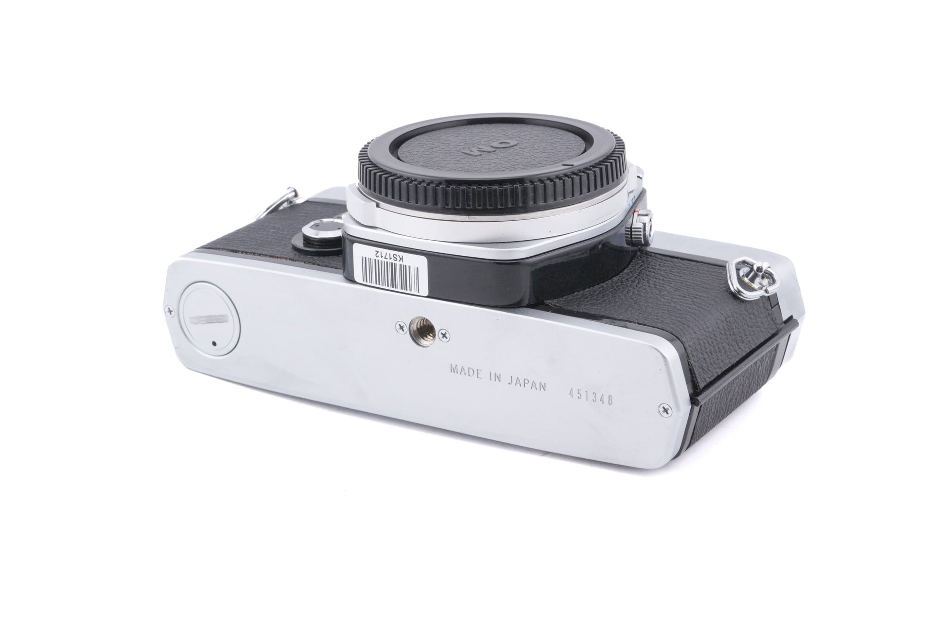 Manual focus OM-mount 35mm SLR released by Olympus in 1972. It changed the entire 35mm SLR market by fitting professional-quality features in a compact body. It has a mirror lock-up and a self-timer. The battery powers only the light meter. This is the earliest version of the OM-1 and lacks support for a motor drive. Metal body available in both black and silver.