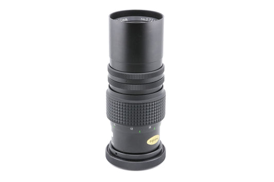 Manual focus telephoto lens made for Canon FD mount SLRs by Lucenter. Metal body available in black.