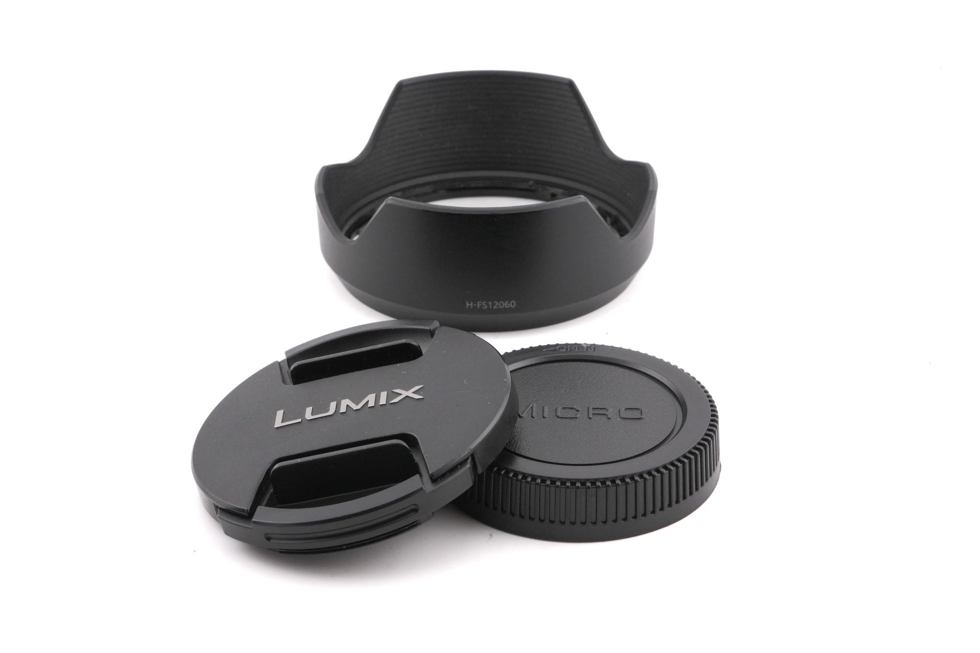 This Panasonic 12-60mm f3.5-5.6 G Vario ASPH. Power O.I.S. (H-FS12060) includes:
