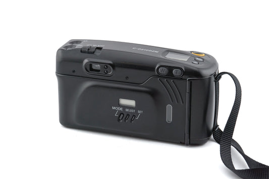 Autofocus 35mm point-and-shoot camera released by Panasonic. It has a self-timer and a built-in flash. Plastic body available in black.