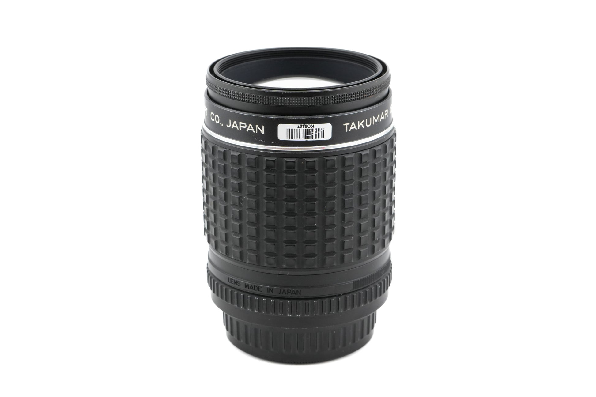 Manual focus telephoto lens made for K-mount 35mm SLR cameras introduced by Pentax and manufactured from 1980 to 1988. It does not have an aperture auto setting so it does not support aperture automation (Tv and P modes). It has a built-in lens hood. Metal body available in black.