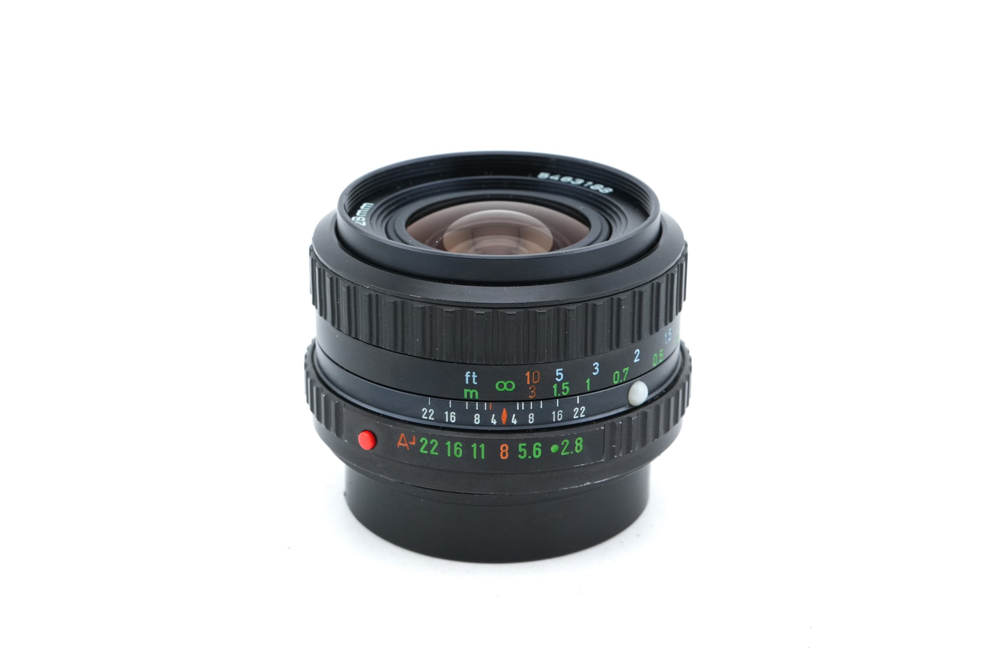 Manual focus wide-angle lens for K-mount 35mm SLR cameras made by Pentax. Metal construction available in black.
