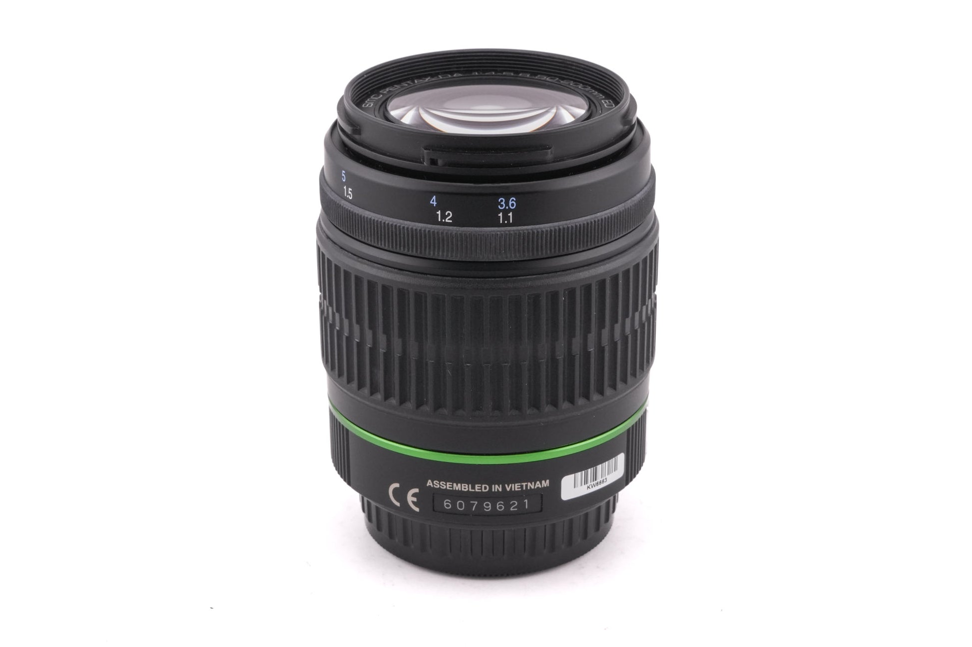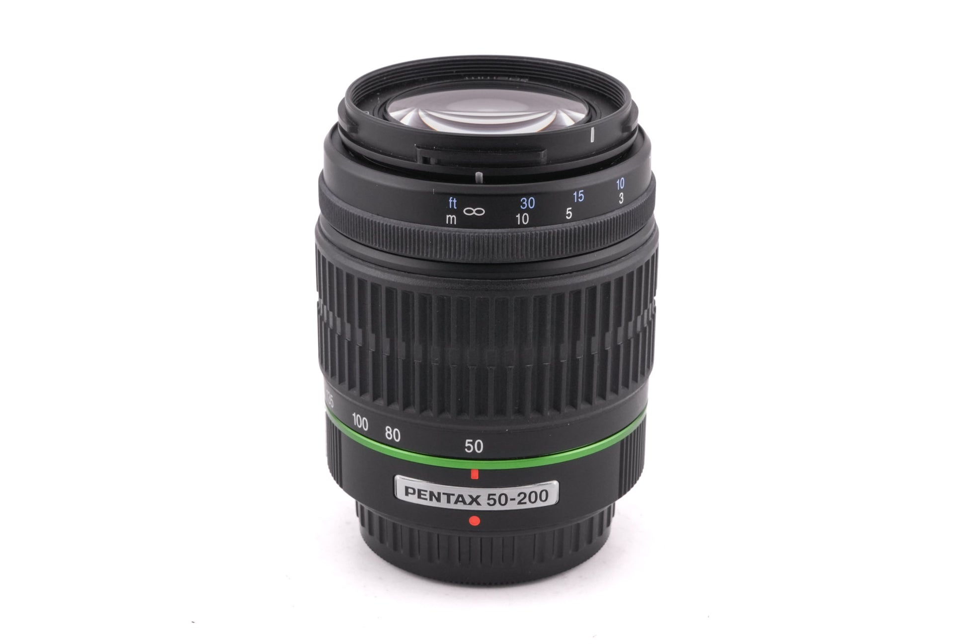 Autofocus normal-telephoto zoom lens for K-mount DSLR's made by Pentax. Plastic body available in black with a green line.