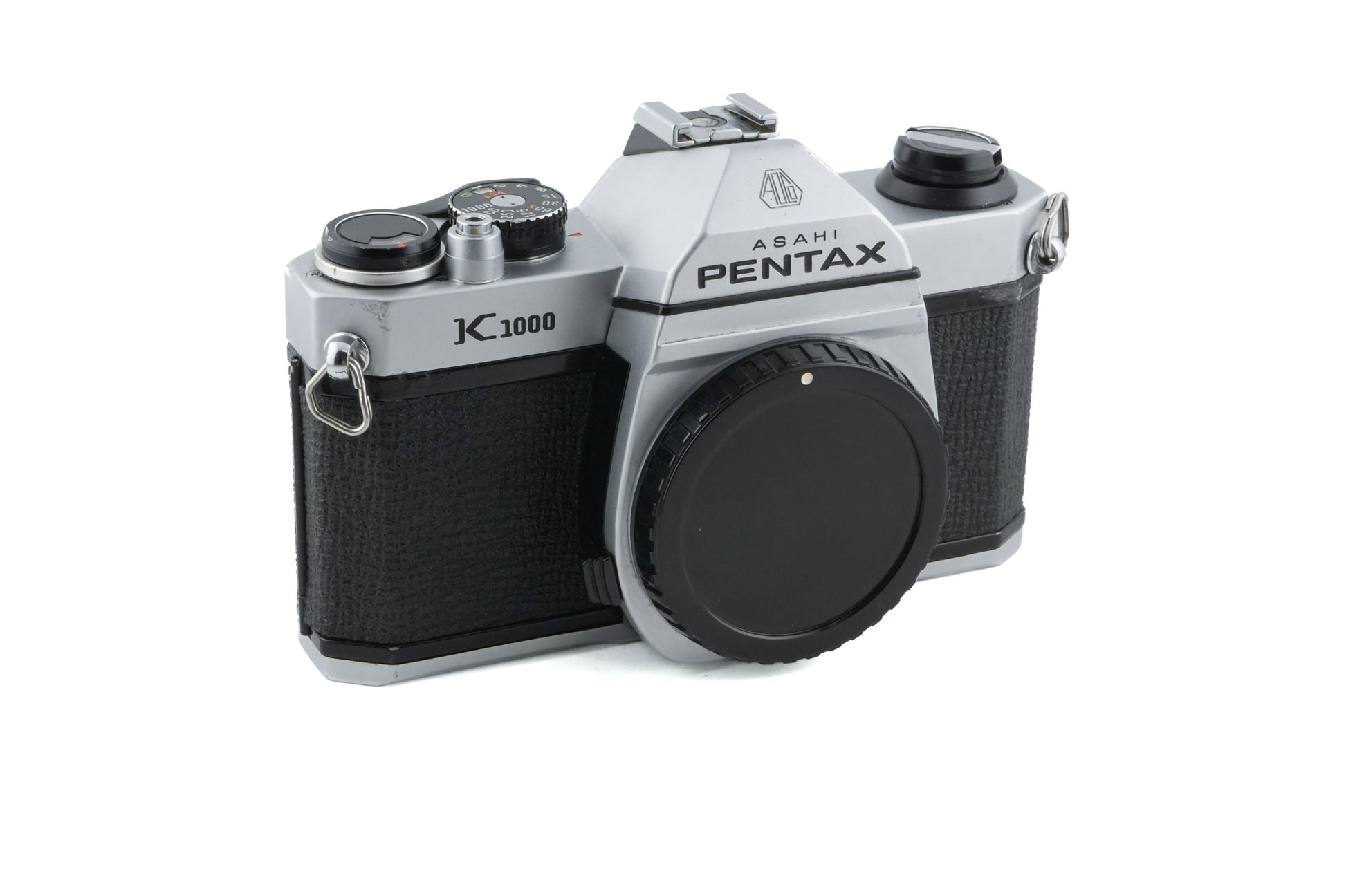 Manual focus K-mount 35mm SLR released by Pentax in 1976. The K1000 sold over 3 million units and was produced for over 20 years. Metal body available in silver.