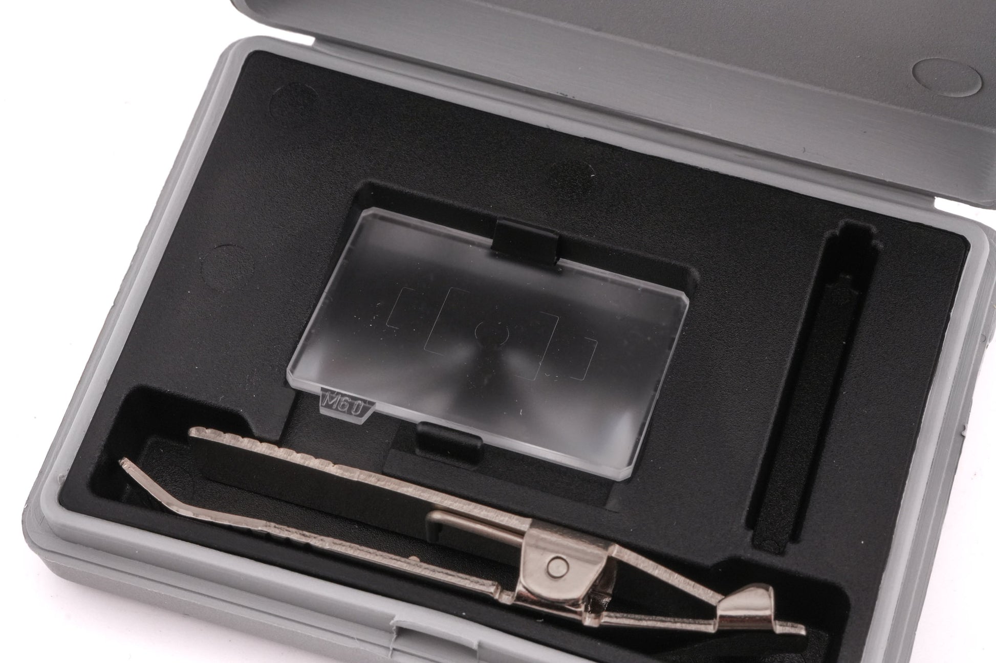 Focusing screen made for the K-3, K-5, and K-7 K-mount DSLR cameras introduced by Pentax. It has two sets of brackets and a circle in the center.