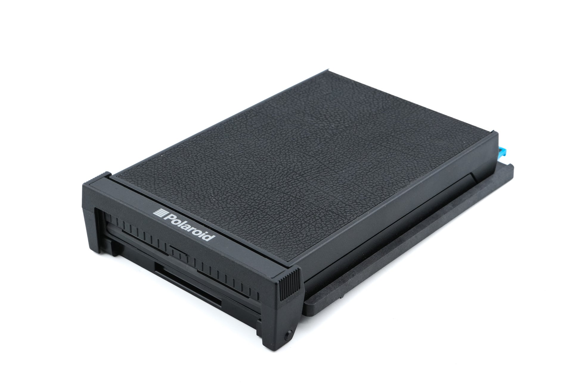 Older Polaroid back that fits most 4x5 cameras. Takes 100-type instant film. Plastic construction, with a metal latch to hold the back door closed.