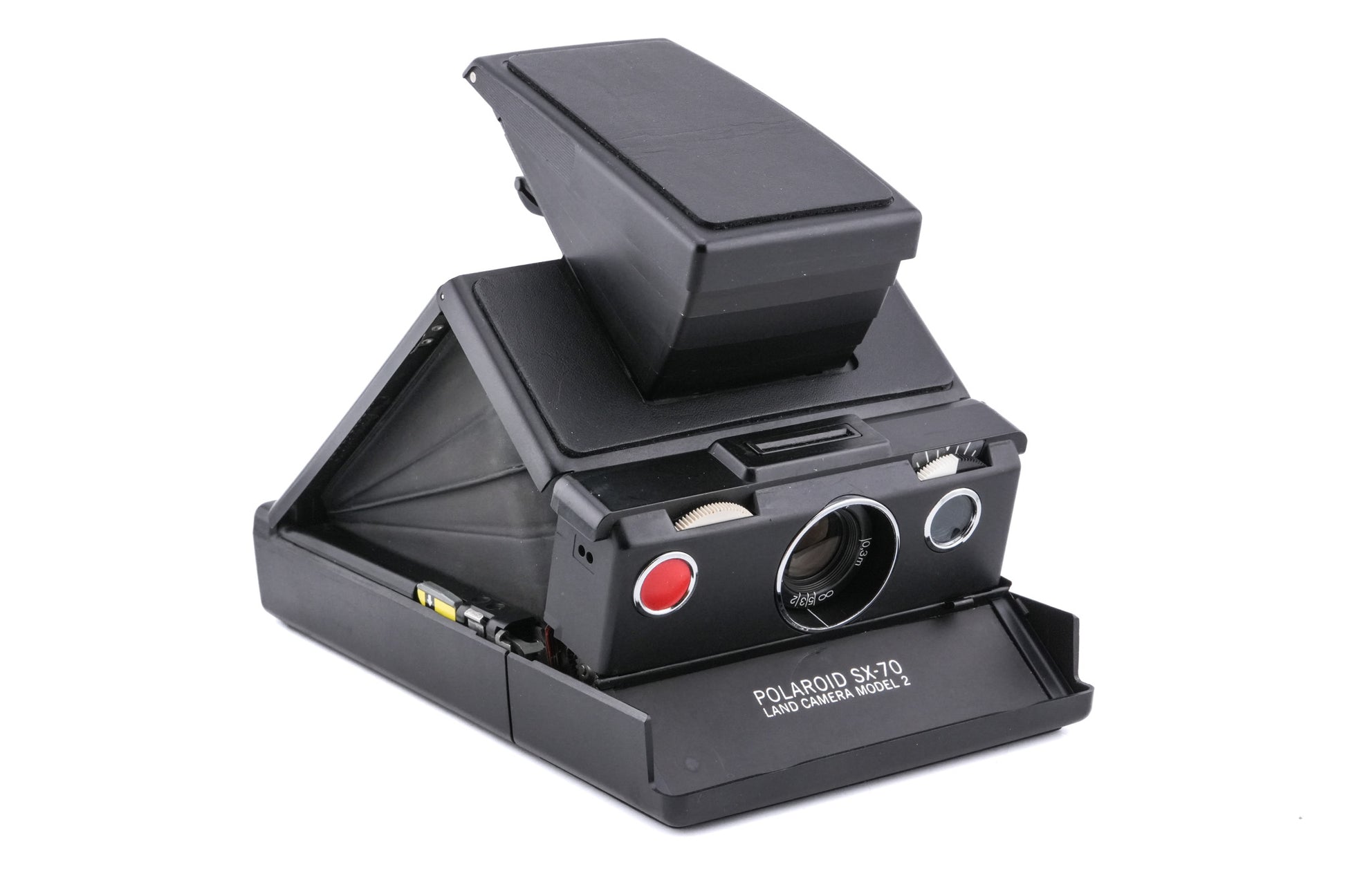 Manual focus SX-70 format instant film SLR camera released by Polaroid in 1974. The SX-70 was the world's first folding SLR and introduced the integral print film technology used by Polaroid and Fujifilm Instax cameras to this day. Plastic/metal body available in black.