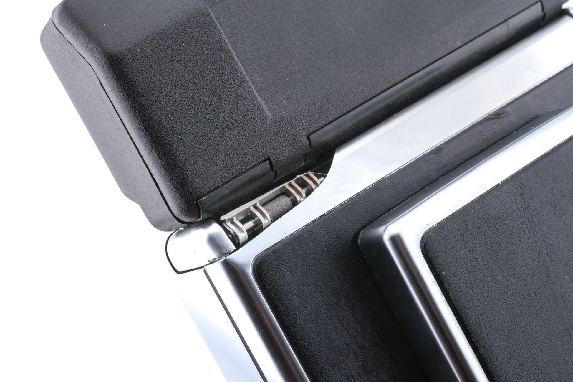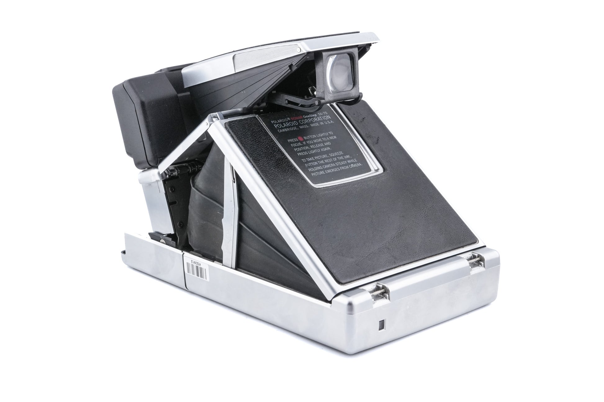 Autofocus SX-70 film folding SLR camera introduced by Polaroid in 1972. The Time-zero Autofocus variant has an autofocus attachment on it, allowing you to focus automatically with a light press of the shutter button. Metal body available in black and silver.