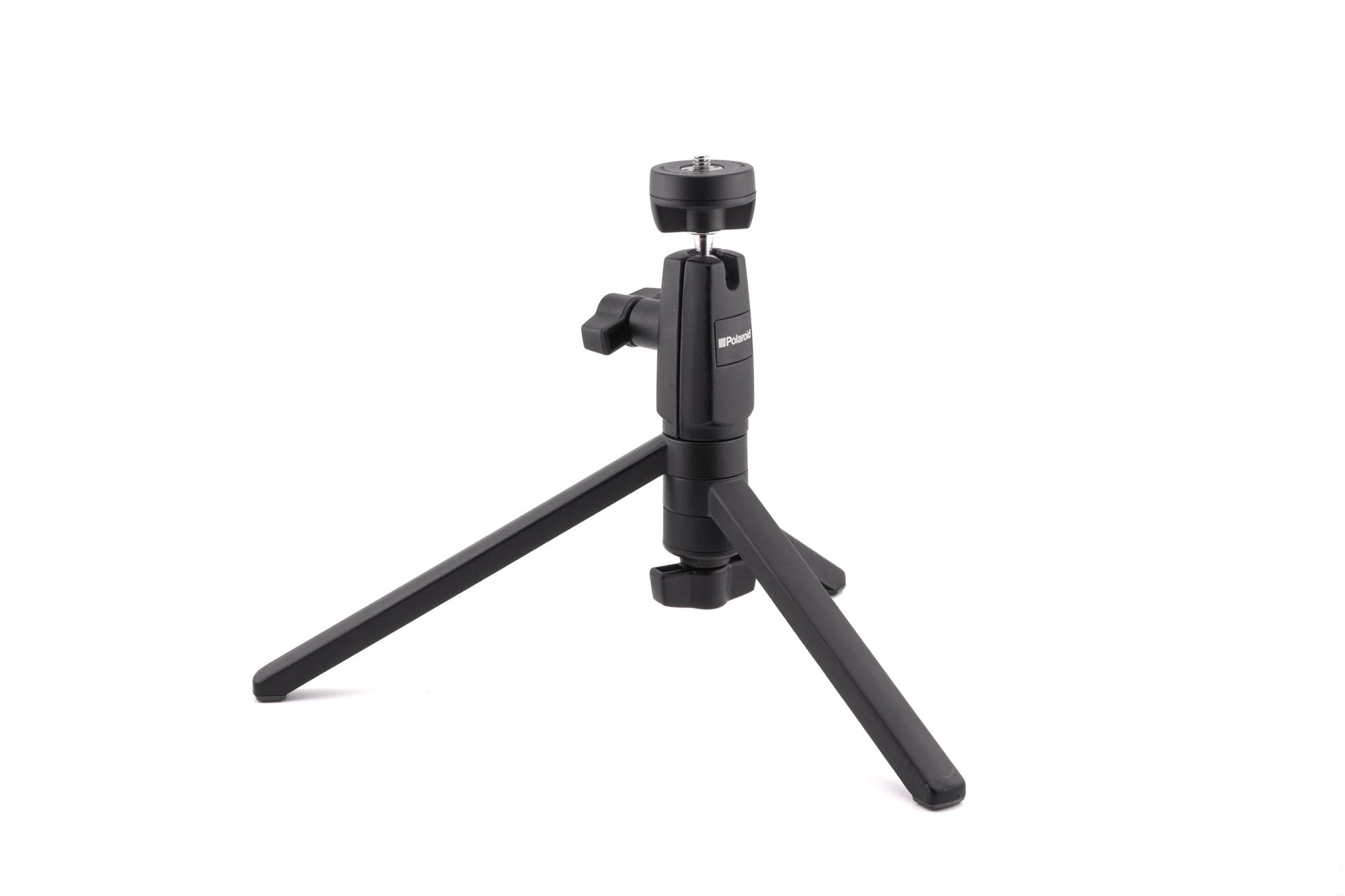 Tabletop tripod made by Polaroid. It has a 1/4" connecting screw. Metal body available in black.