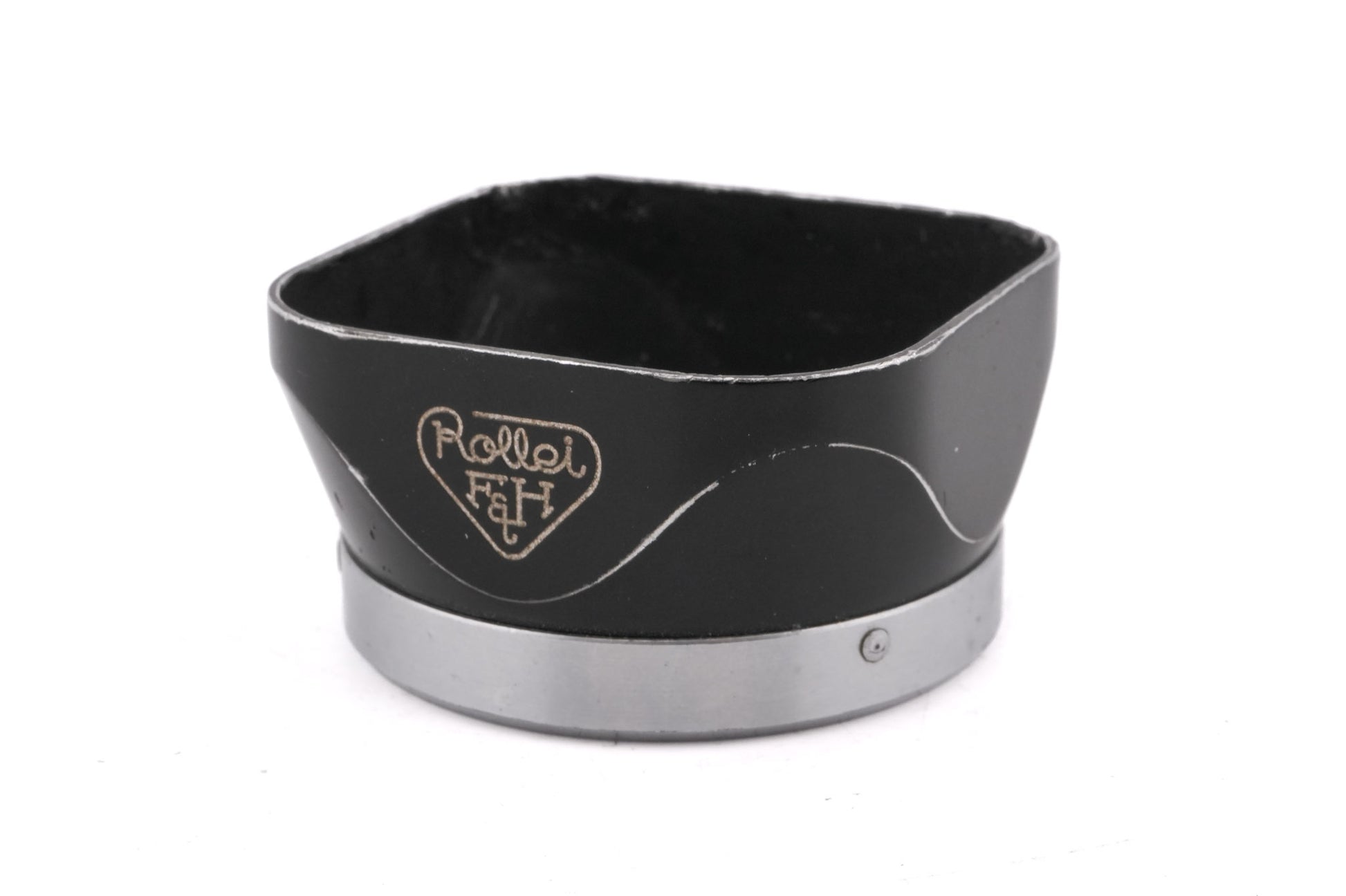 Lens hood made by Rollei for Bay 1 filter size TLR lenses. It helps prevent lens flare and blocks unwanted light from hitting the lens. Metal body available in black.