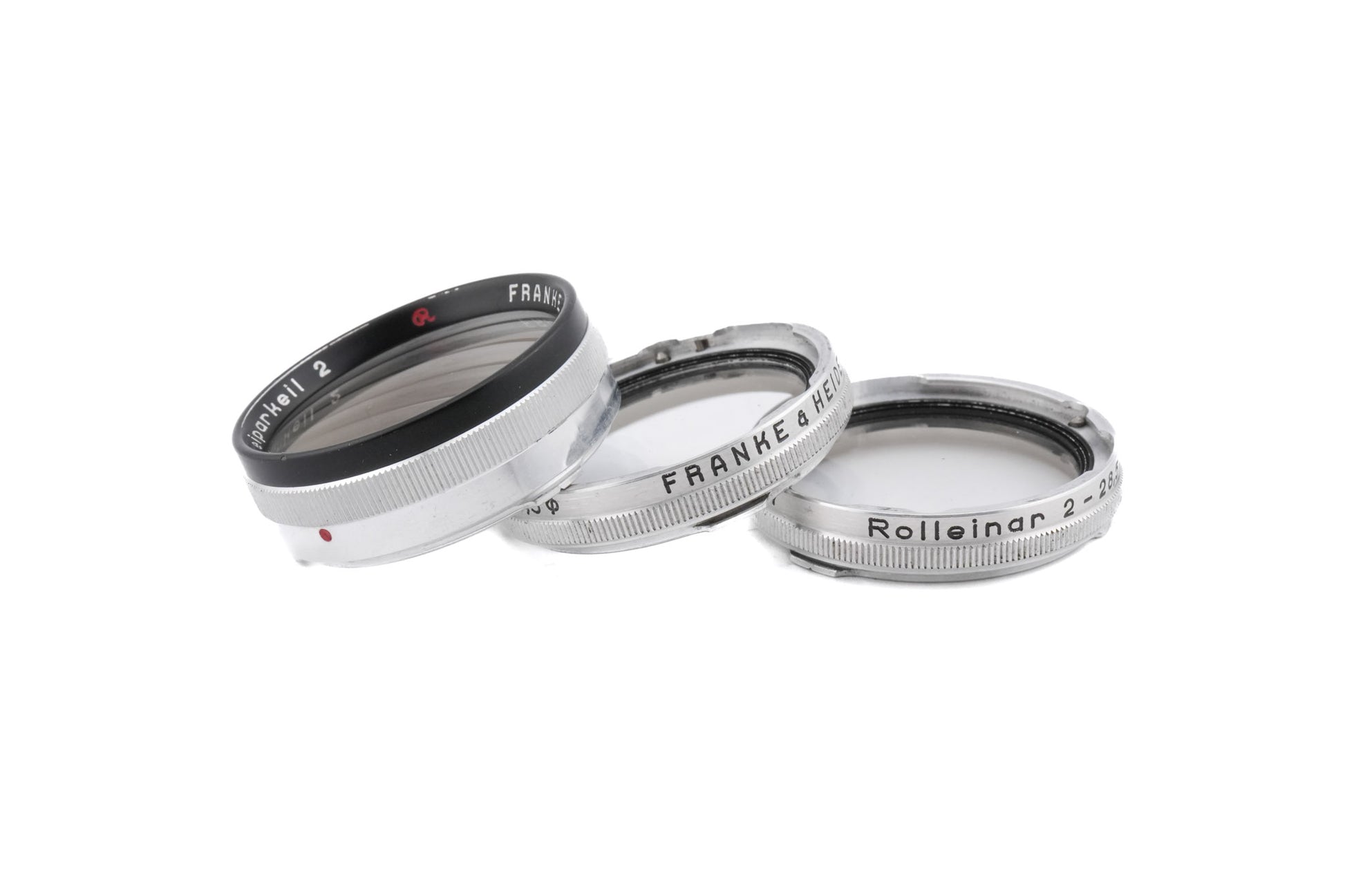 - Older models: Rolleiparkeill, Rolleinar 2, Rolleinar 2 (one Rolleinar per lens, Rolleiparkeill on viewing lens)