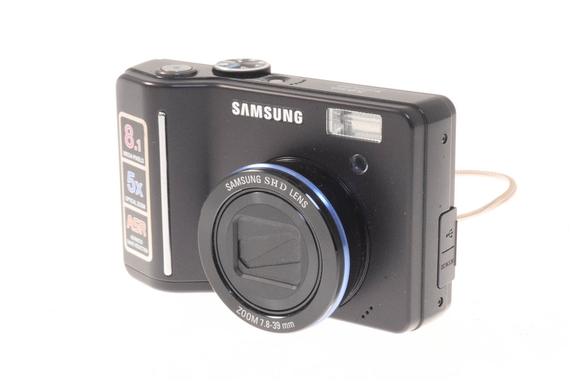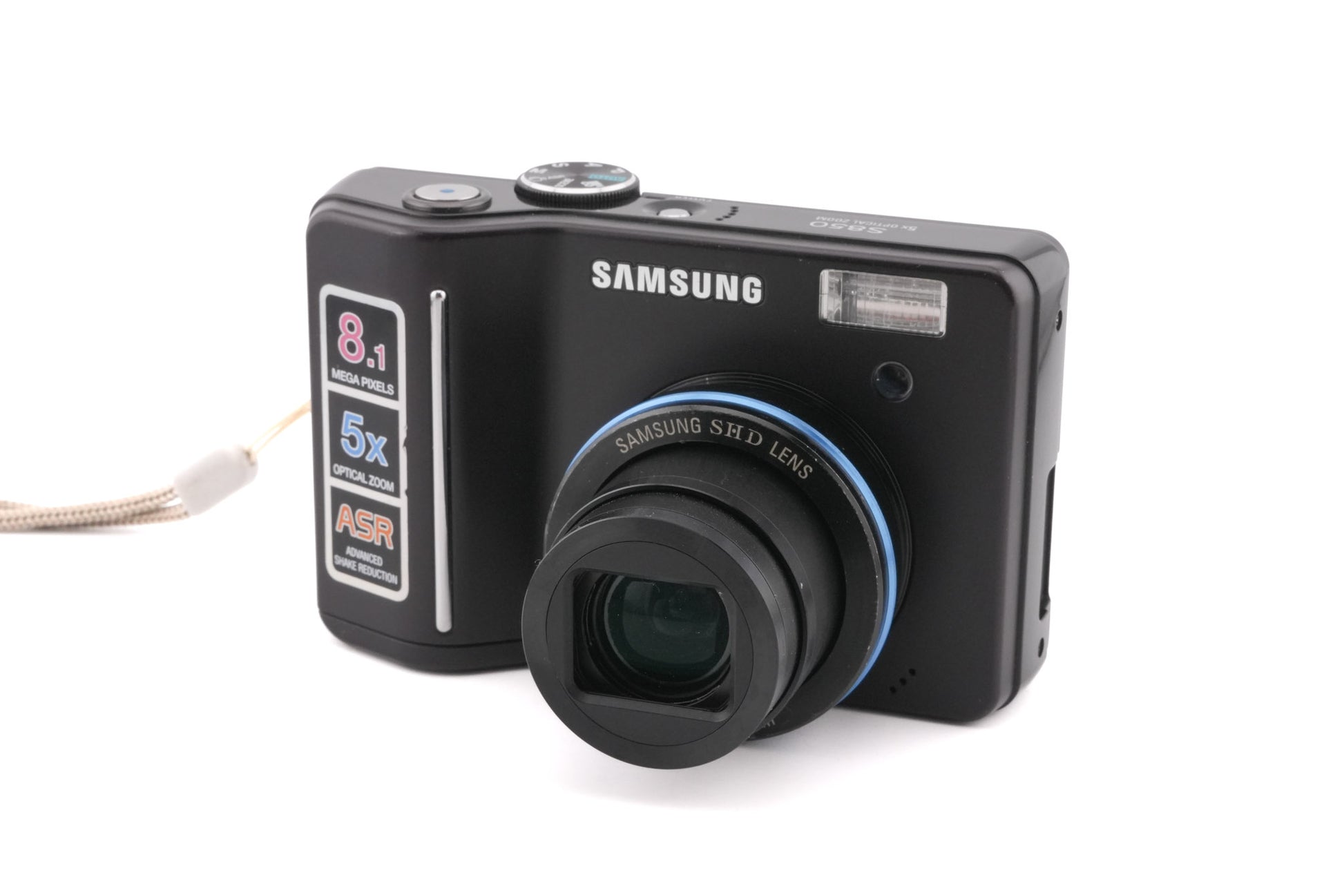Autofocus point-and-shoot digital camera released by Samsung in 2007. Has a 38 - 190mm equivalent focal length and 640 x 480, 30 fps video recording. Also has a built-in flash and a 2.5″ LCD screen. Plastic body available in black.