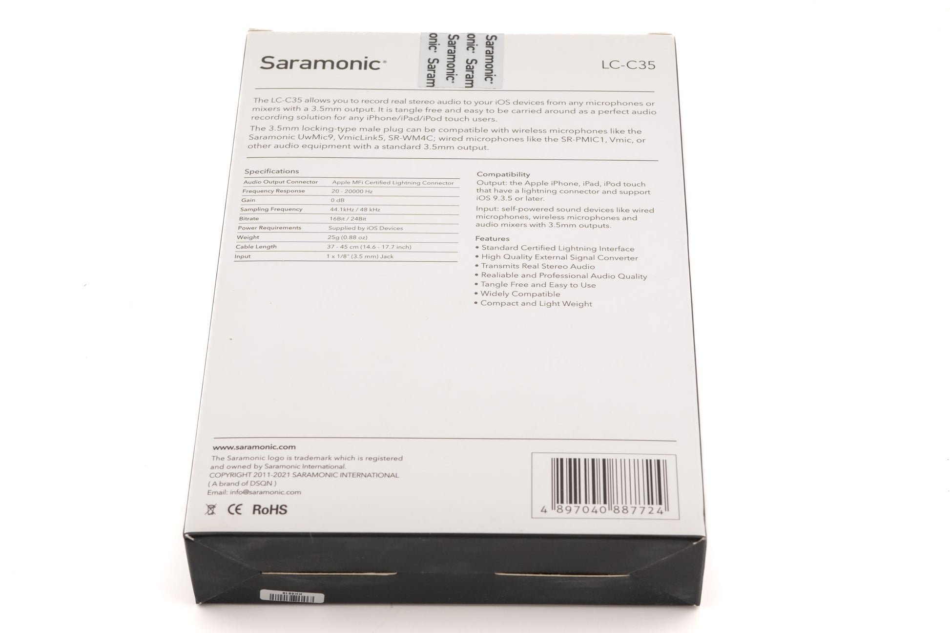 Details: Saramonic 3.5mm Male Jack To Lightning Audio Interface (LC-C35)