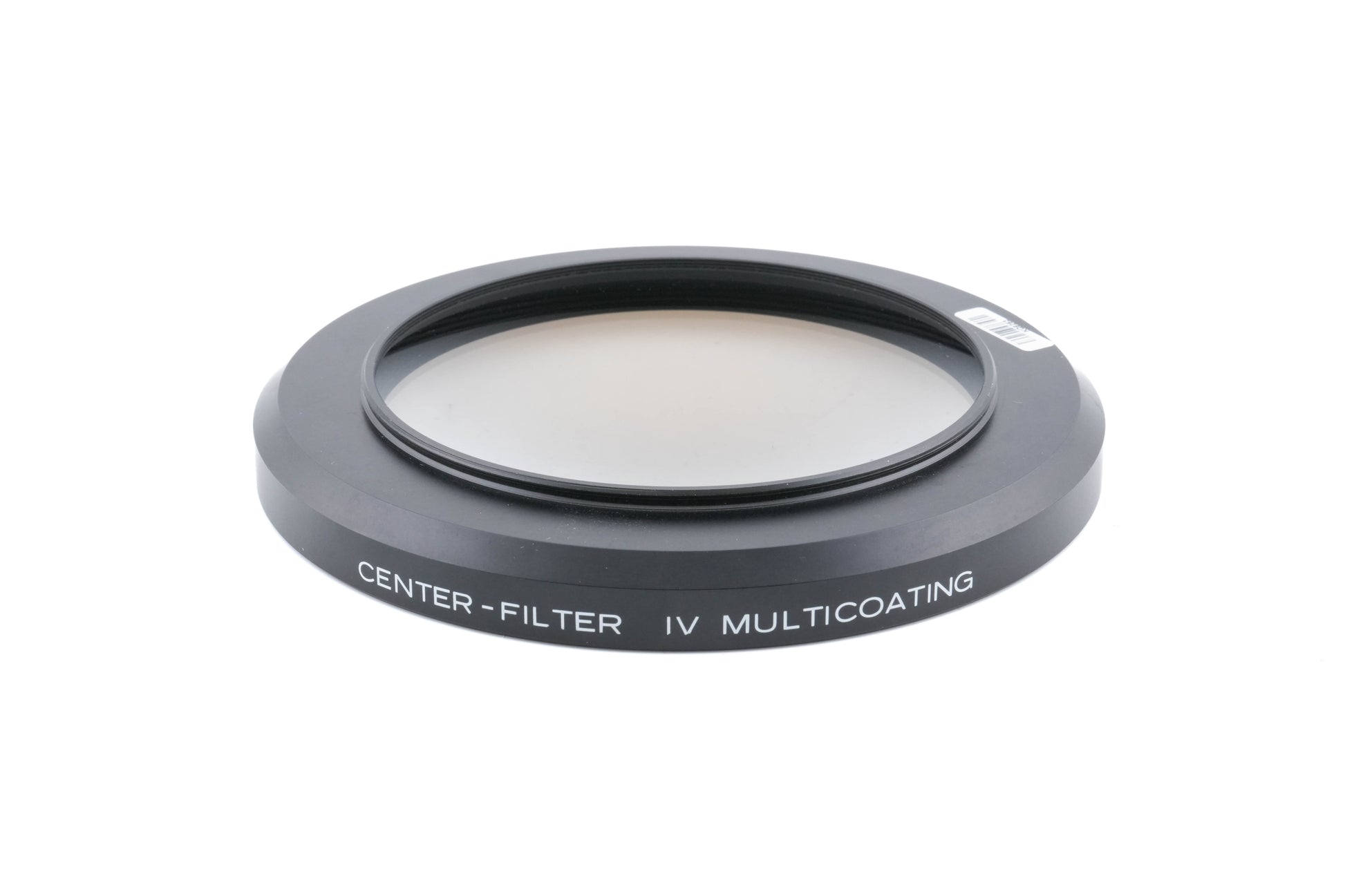 Center filter made for 90mm f5.6 and 120mm f8 Super Angulon lenses by Schneider-Kreuznach. It is used for compensating the vignetting caused by the fall off of illumination, that is apparent when working with ultra-wide-angle lenses. Metal body available in black.
