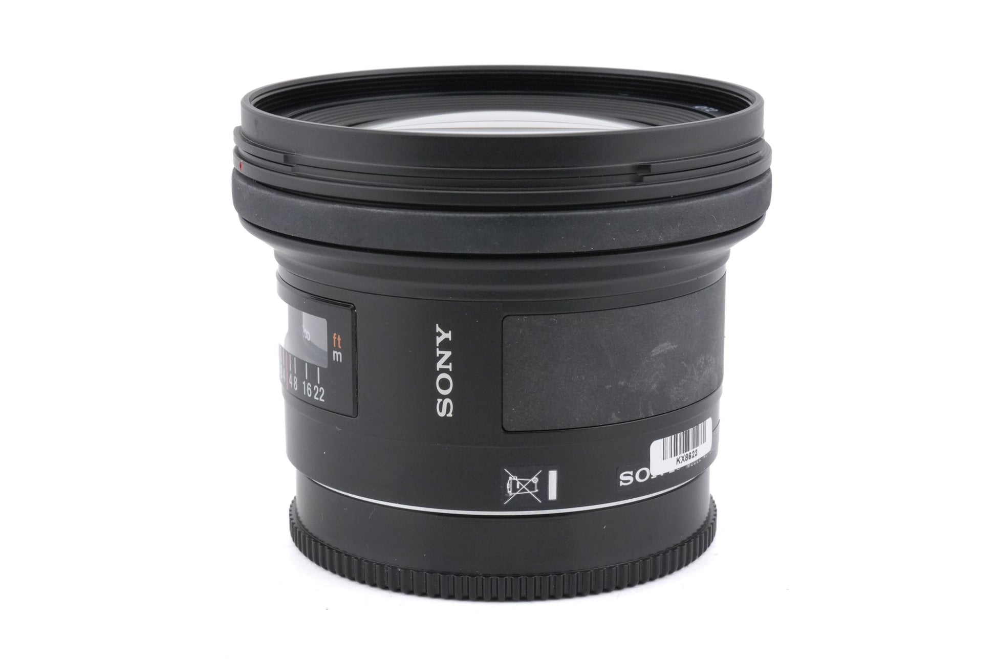 Autofocus wide angle prime lens for Sony A / Minolta AF systems introduced in 2006. Plastic body available in black.